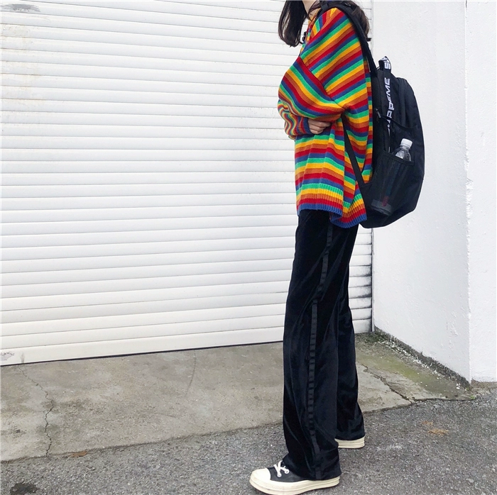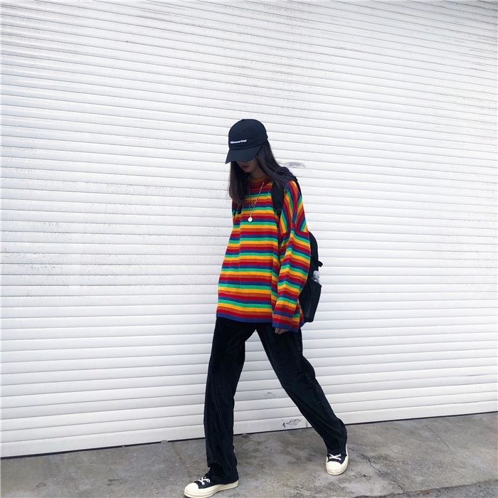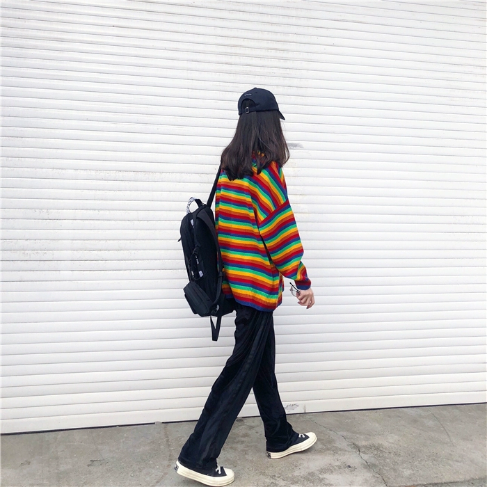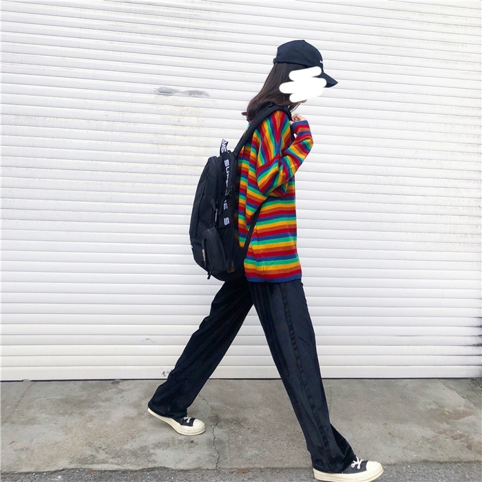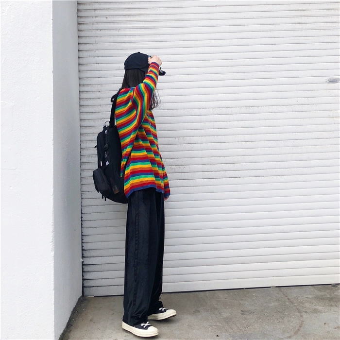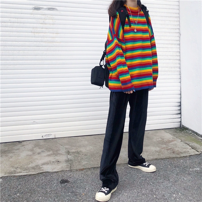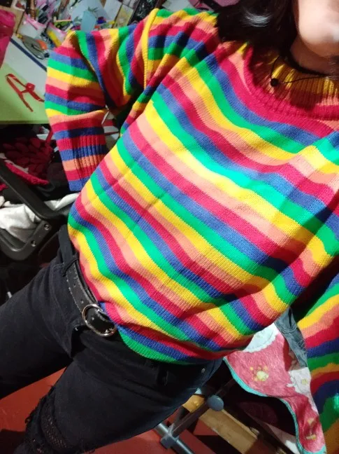 Свитер женский полосатый в стиле Харадзюку, в Корейском стиле, одежда Ulzzang