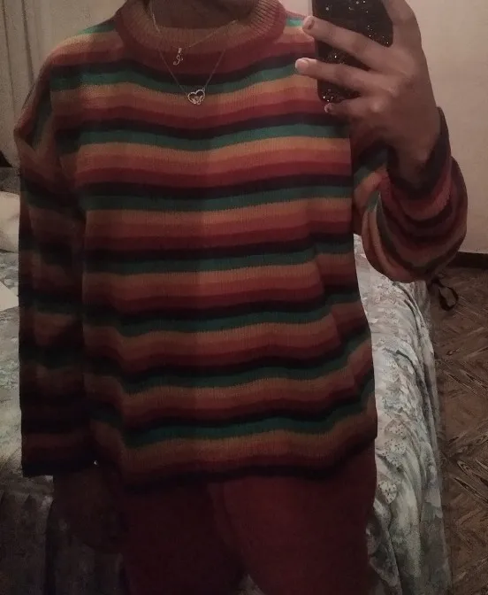 очень хороший свитер, он довольно тёплый, на осень-весну самый раз, мне понравился! в подарок продавец положил чокер
