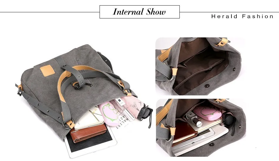 Herald модная сумка-тоут с большими карманами, женская сумка, Наплечные сумки, холщовые кожаные сумки для женщин, сумки