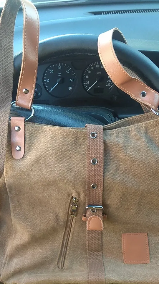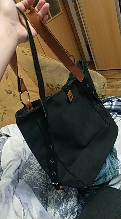 Сумка на фотографии выглядит интереснее и красивее, чем в жизни На самом деле, это обыкновенная, холщовая очень простая сумка-мелок. Выглядит просто. При этом ее можно назвать весьма удобной: снаружи два кармашка с молниями, застегивается на ремешок. внутри кармашек с молнией и кармашек с кнопочкой. Когда выбирал, она показалась мне симпатичнее всех остальных , что выбирал: модная, стильная, красивая. Теперь не знаю, как ее будет использовать жена и с чем носить. Тем не менее, плохой ее не считаю. Если не возьмет жена, будут носить дети. Сумка найдет свое место. Но признаюсь, это первый мой "прокол" при заказе с алиэкспресс - если бы у сумки был бы чуть более "богатый" материал, то сумка смотрелась бы совсем по другому - ну, по крайней мере, как на фотографии :)
