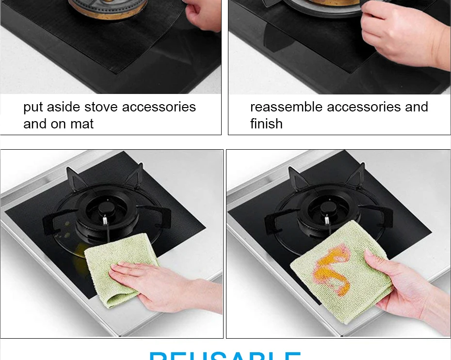 Защитное покрытие для газовых плит, протекторы для плиты, маслостойкий антипригарный многоразовый коврик для очистки кухонных инструментов, защита для варочной панели 4 шт.компл.