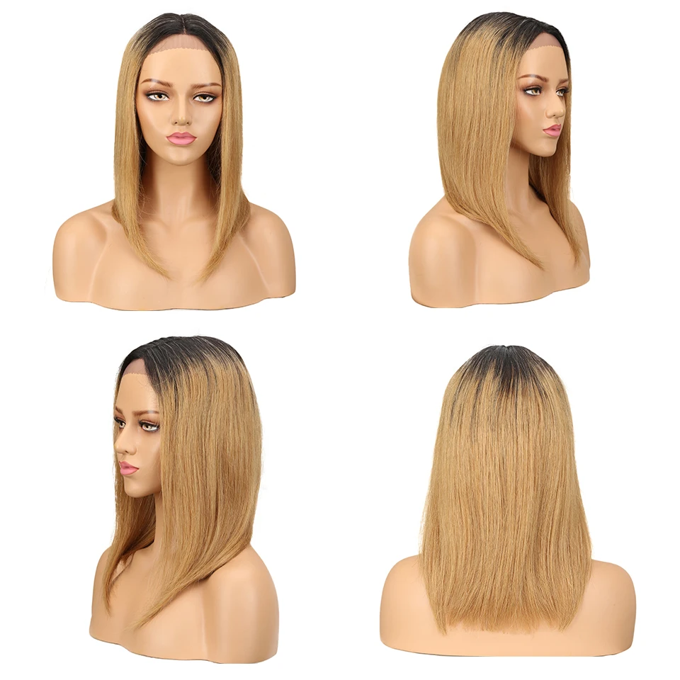 Гладкие кружевные передние парики из человеческих волос для черных женщин бразильский прямой парик Боб на сетке передний парик светлые человеческие волосы с эффектом омбре Бесплатная доставка