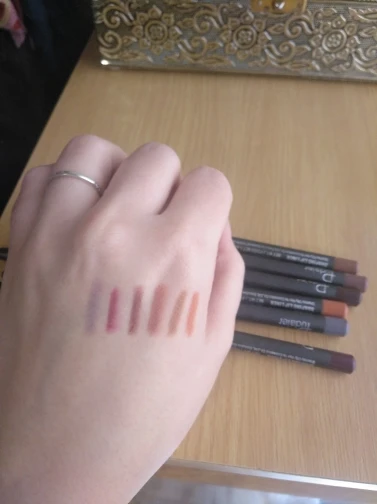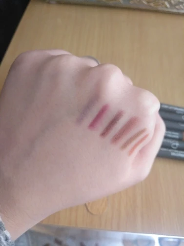 ну так... цвета как на картинке, насчет стойкости не скажу - пока не носила долго. два карандаша пришли со сломанными стерженьками, в точилке крошатся ( но за такую цену 6 штук - понятно что качество не шанель))))