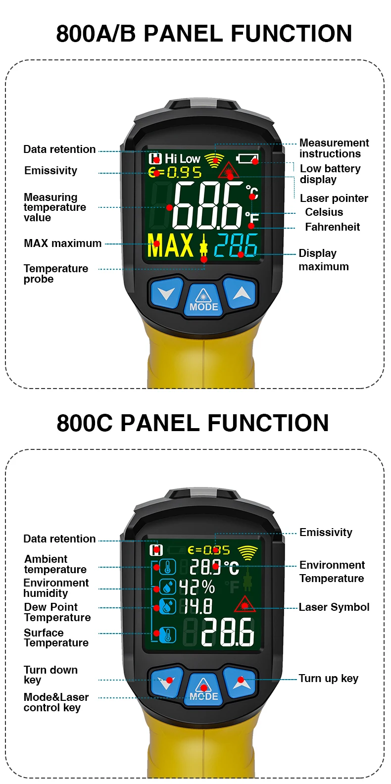 Описание продукта является точным, но сам продукт не является. Я получил два блока и оба показывают разную температуру одной и той же поверхности (которая, кажется, не правильная температура-всегда слишком высокая) Я попробовал использовать настройки для разных материалов, но это тоже не поможет) Тот факт, что две единицы показывают разную температуру для одного и того же места, ясно показывает, что это красивая игрушка.