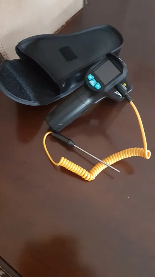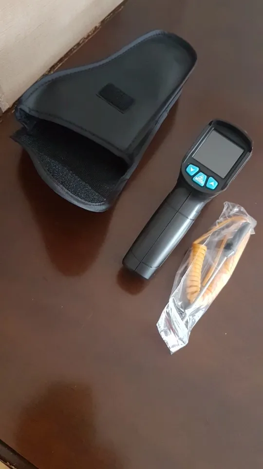 Быстрая доставка, прибор работает. Чехол и термопара в комплекте. Термопара измеряет только при нажатии затем экран тухнет, что не очень удобно. Так что термопара, на мой взгляд, без надобности.