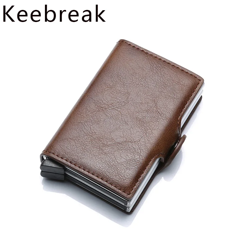 Держатель кредитных карт с Rfid-защитой, двойной бумажник, чехол для мужчин, Алюминиевый металлический деловой держатель для кредитных карт, кожаная карманная сумка