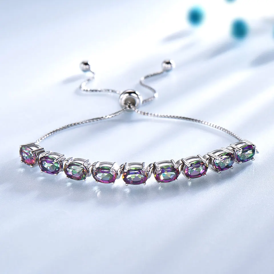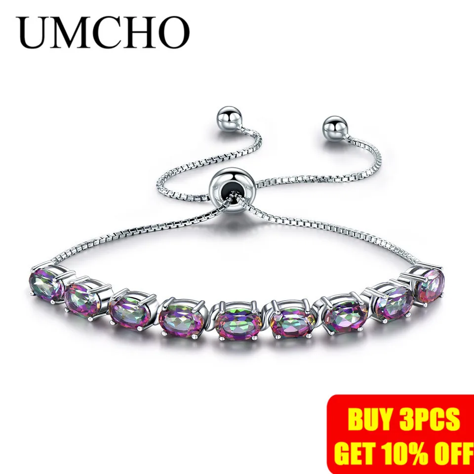 UMCHO 9ct Мистический топаз, чистое серебро 925 пробы, браслеты-цепочки для женщин, Изящные Ювелирные изделия, регулируемый браслет, подарок на день матери, Новинка