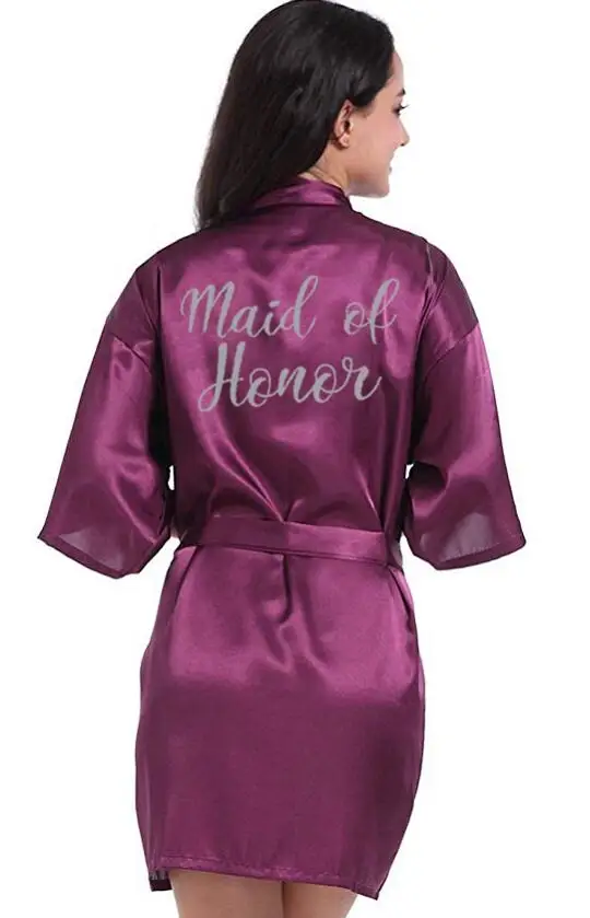Женское атласное кимоно с надписью, фиолетовое Короткое свадебное кимоно для матери халат жениха, для подружки невесты, Прямая поставка