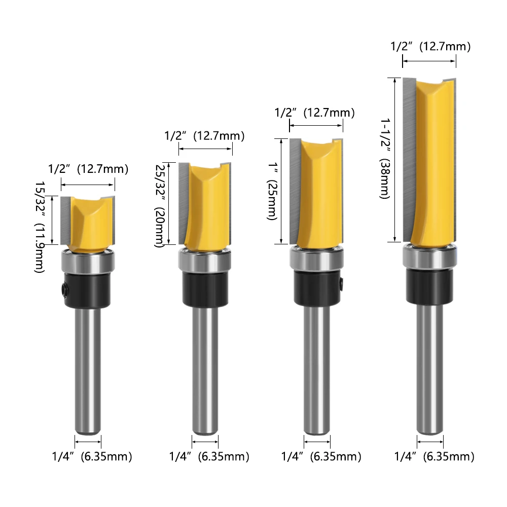 Фреза для фрезы по дереву, 14 дюйма, 3 шт., верхний и нижний подшипник, 12 дюйма