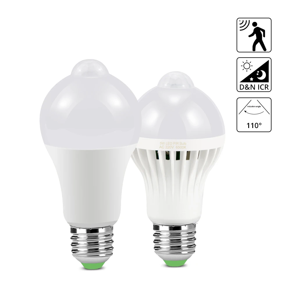 Светодиодная лампа E27 220 В с пассивным ИК датчиком движения, звуковой датчик движения, 5 Вт, 7 Вт, 9 Вт, 12 Вт, 18 Вт, освещение для лестницы, коридора, ночная аварийная