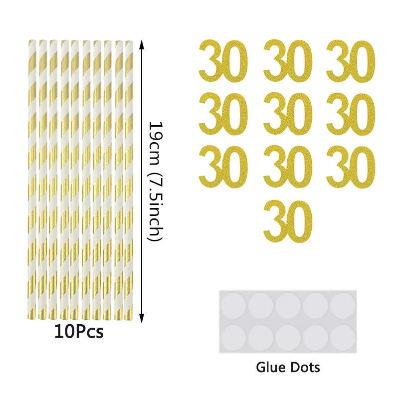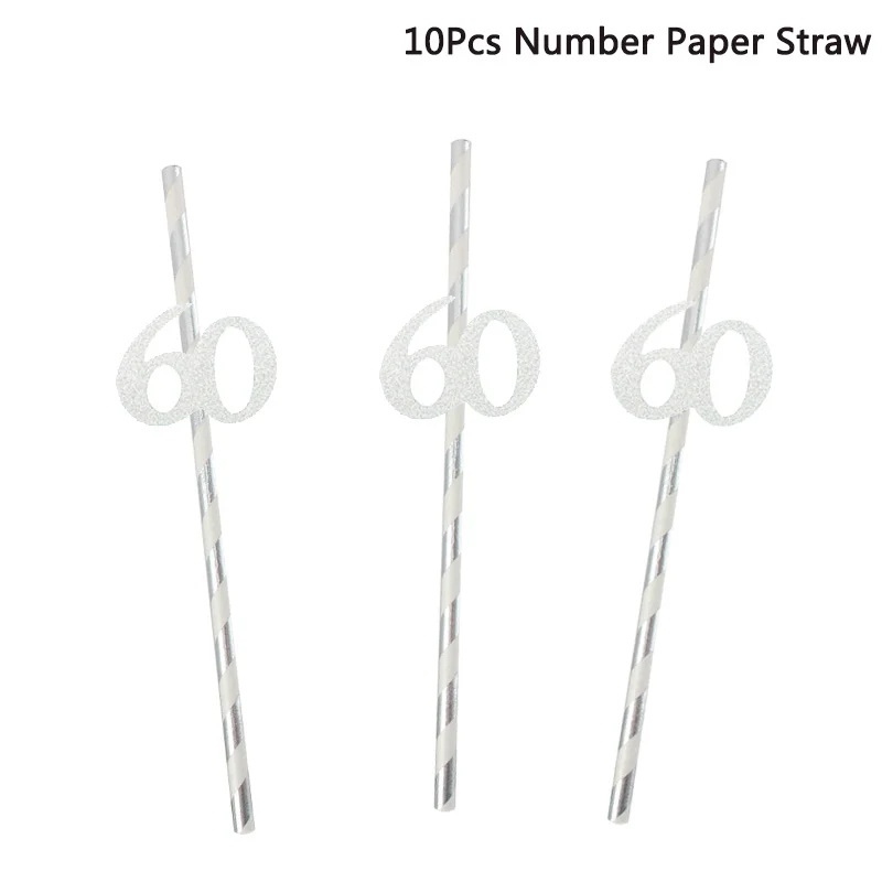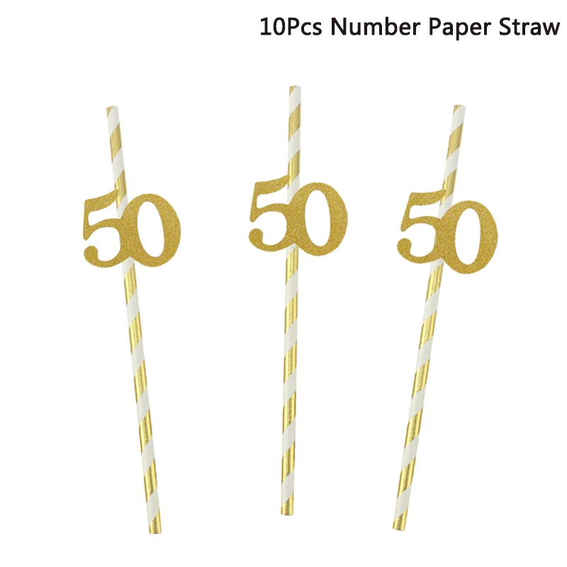 10 шт., ЗолотаяСеребристая соломка Chicinlife с цифрами 30405060 лет для питья, для взрослых, товары для украшения на день рождения, годовщину