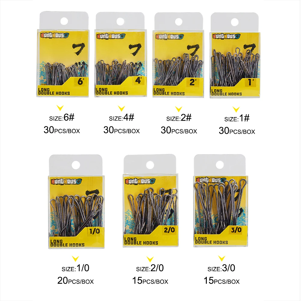 Рыболовные крючки Hunthouse, 10, 20, 30, двойной крючок, высокое качество, углеродистая сталь, рыболовные крючки, острые Крючки #1, #2, #3, #4, набор рыболовных снастей