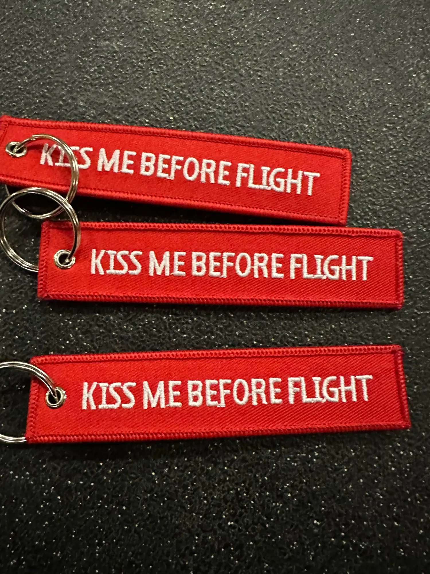 Брелок с этикеткой Kiss Me Before Flight 5 шт.лот, украшение для ключей с красной вышивкой, бирка для багажа, Подарочный авиационный брелок для мужчин и женщин