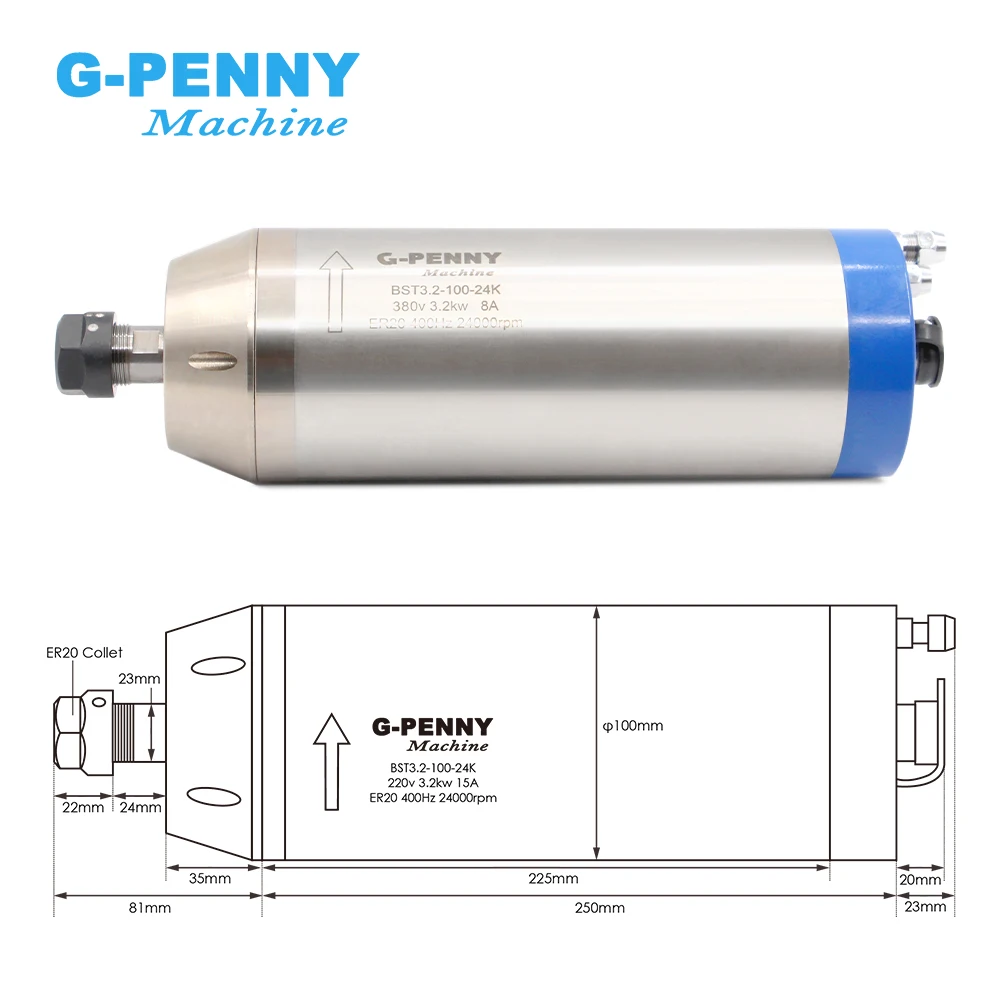 1 и220v 3.2kw ER20 4 подшипники шпиндель с водяным охлаждением