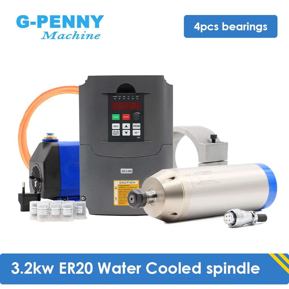 Комплект шпинделя с водяным охлаждением 220 кВт ER20 380 В100 в кВт и HY 4 кВт инвертор и кронштейн шпинделя мм и водяной насос 75 Вт трубка 5 метров