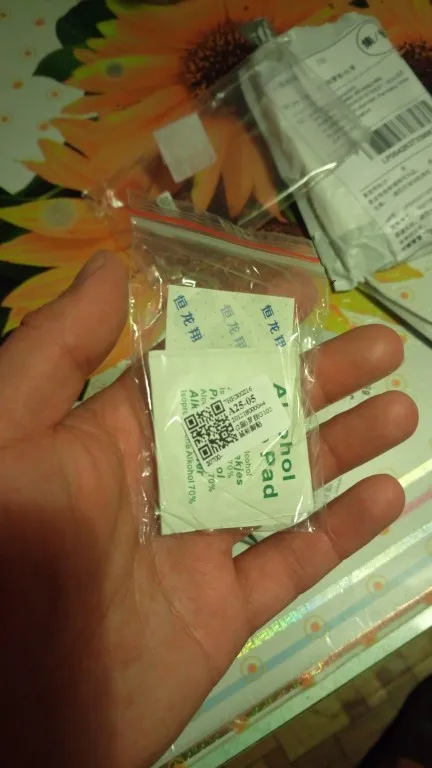 в комплекте 2 спиртовые салфетки, качество нормальное, доставка 2 недели