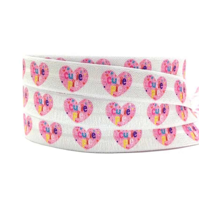 На День святого Валентина, 10 ярдов, 16 мм, с принтом сердечка, складывается, эластичная лента для украшения головы DIY, для девушек, браслет, швейный аксессуар