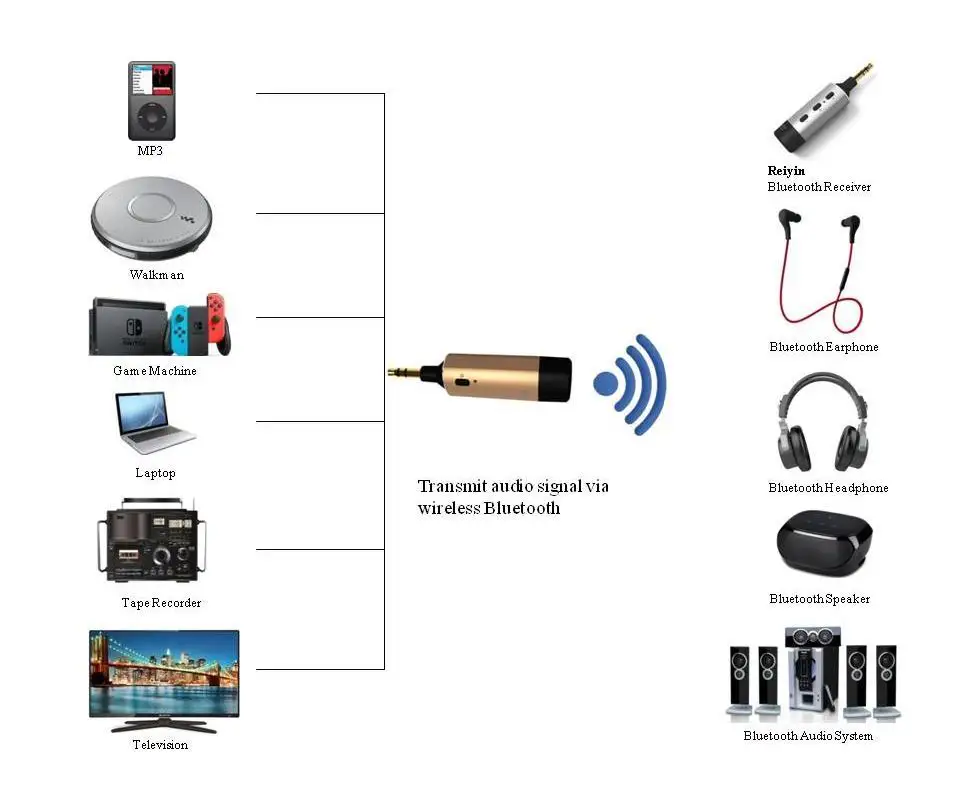 Reiyin Bluetooth аудио передатчик 3,5 мм адаптер для ТВ ipod Классическая MP3 игровая консоль