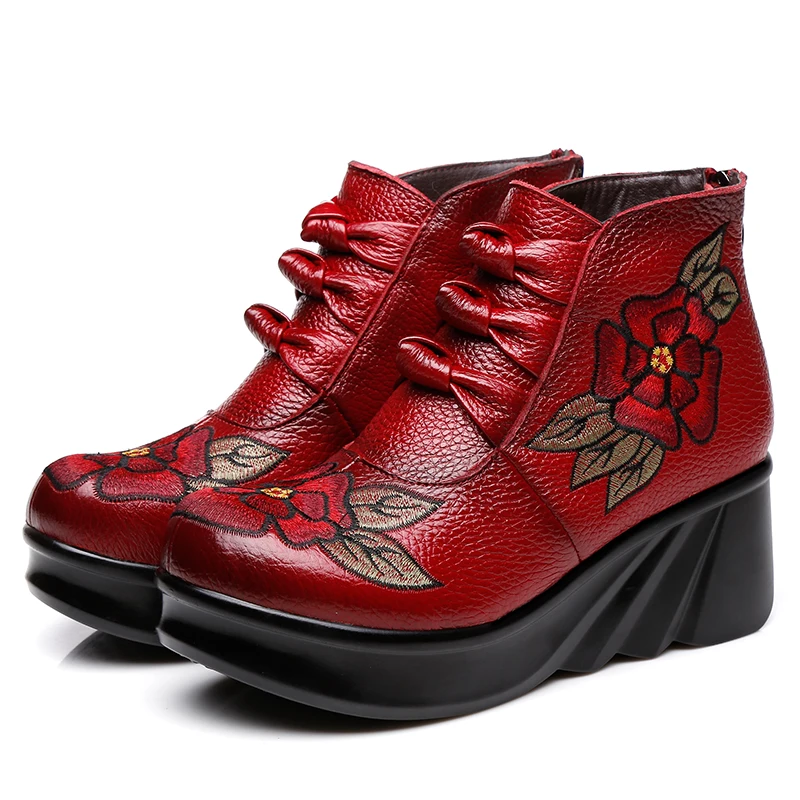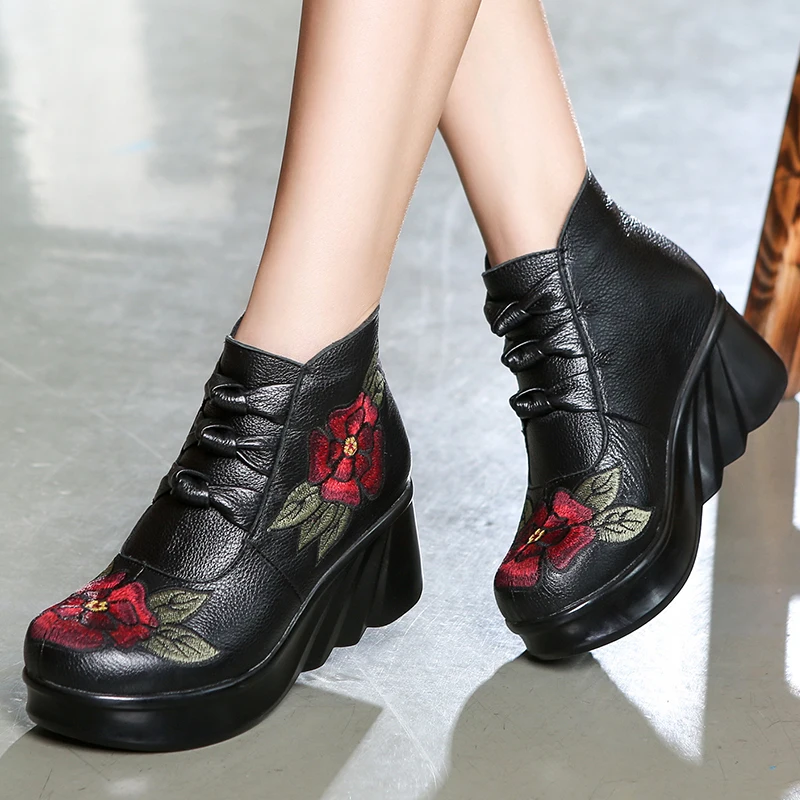 Ботинки женские из натуральной кожи, на платформе, с круглым носком