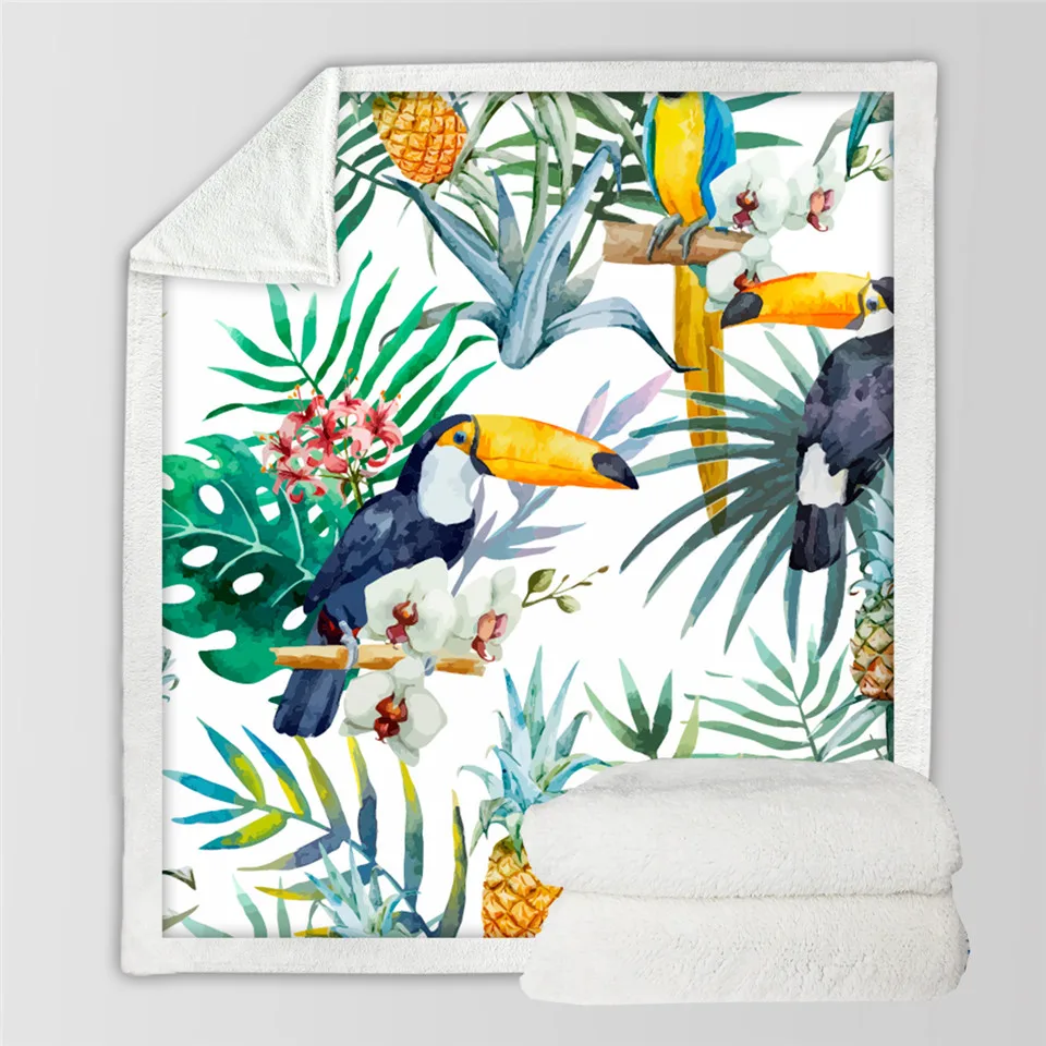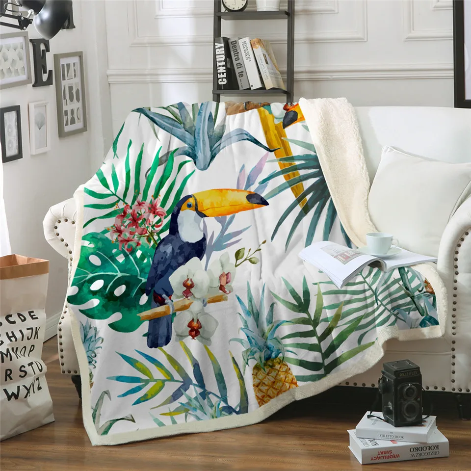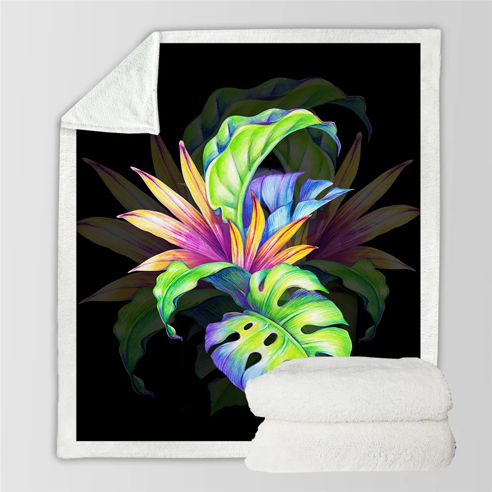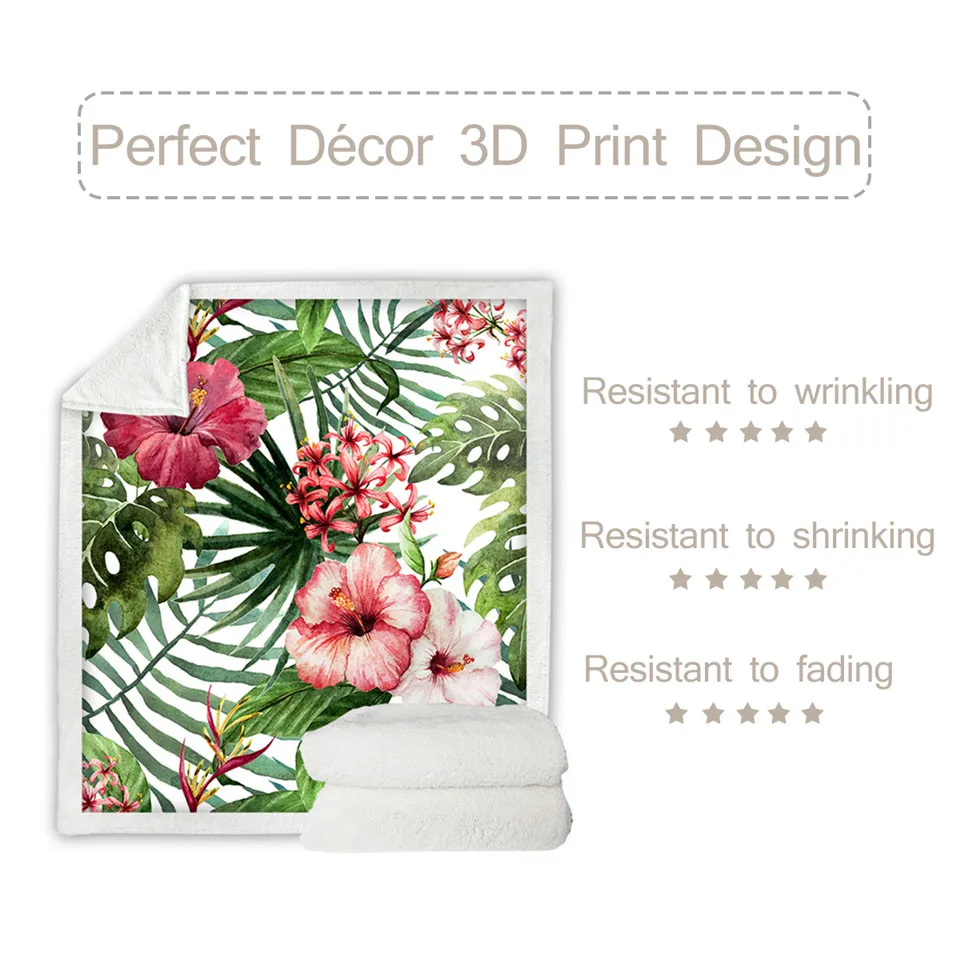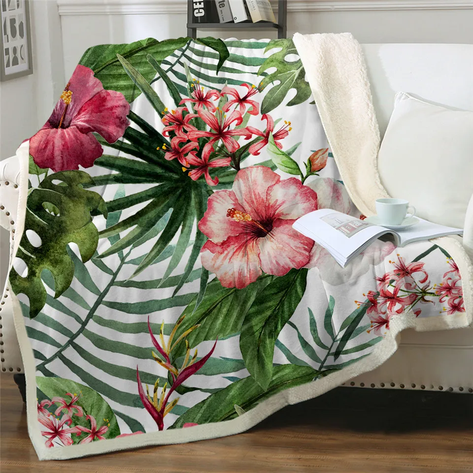 Плед BeddingOutlet с цветами, бархатное покрывало с листьями, красными, зелеными, белыми, тропическими растениями, плюшевое покрывало для кровати, 150x200