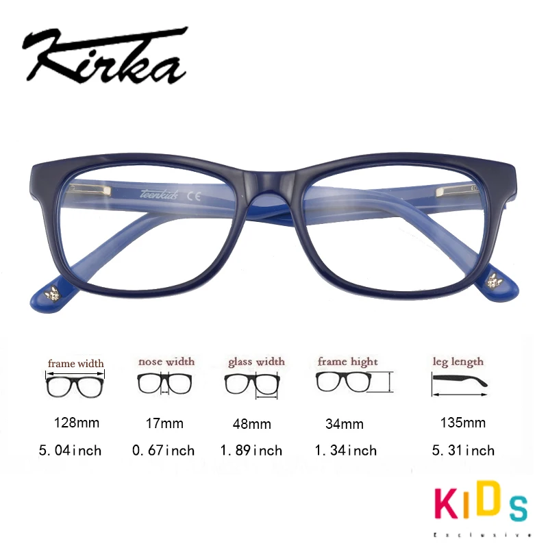 Оптическая оправа для детских очков Kirka, ацетатные очки, Детские гибкие защитные очки с диоптриями, От 6 до 10 лет