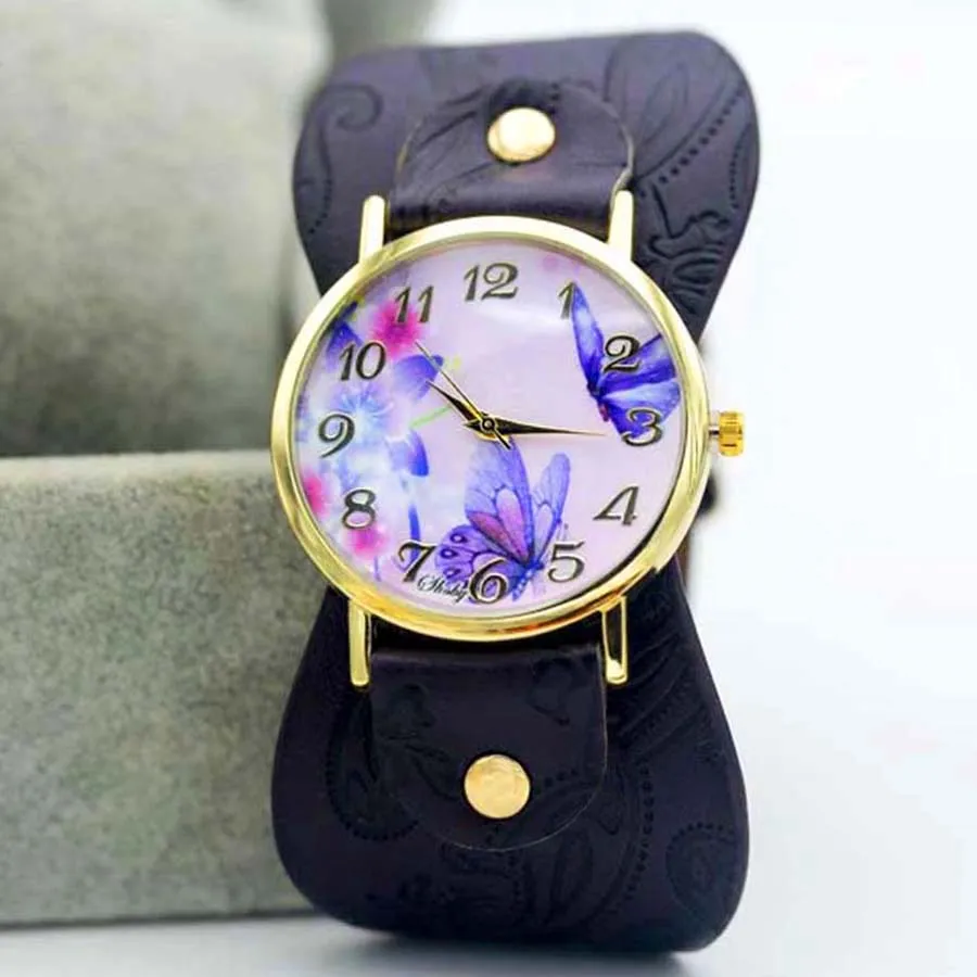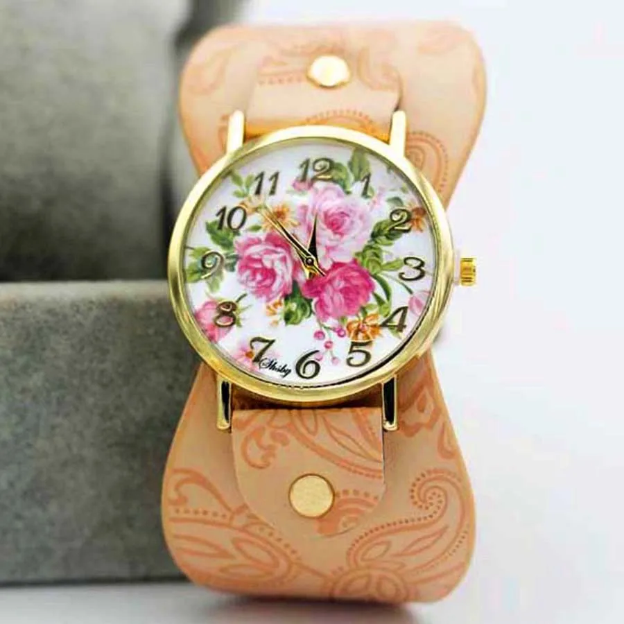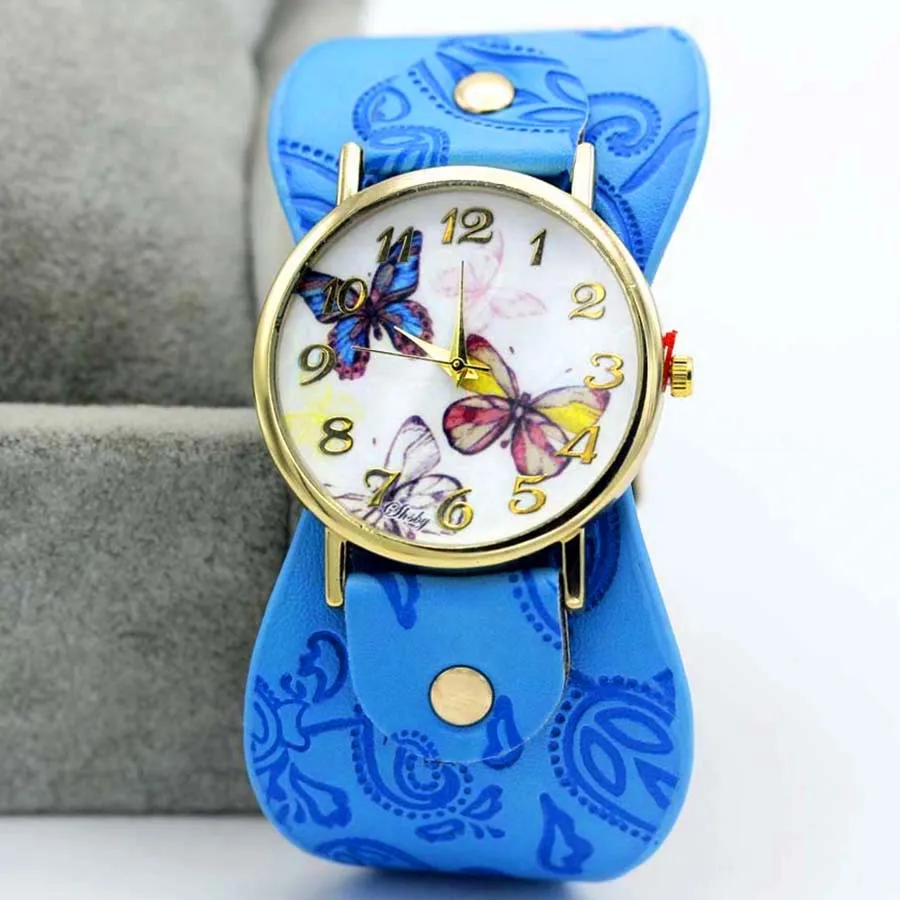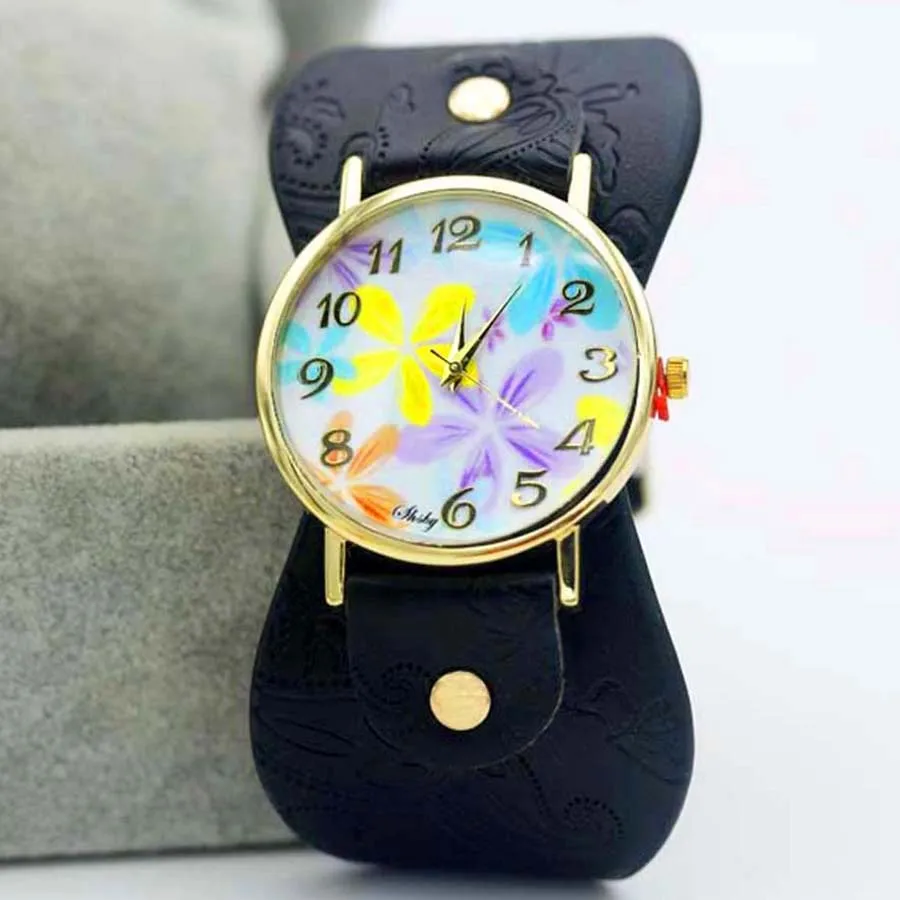 Часы наручные Shsby женские с кожаным ремешком, с принтом, с широким ремешком, Разноцветные Повседневные, подарок для девушек