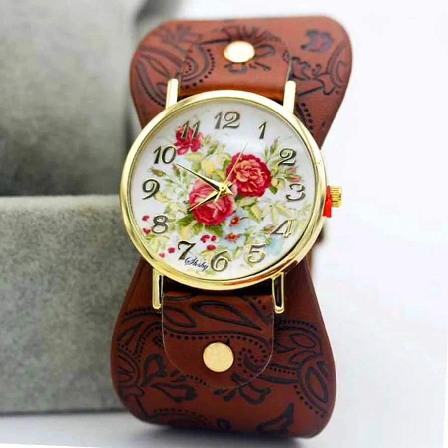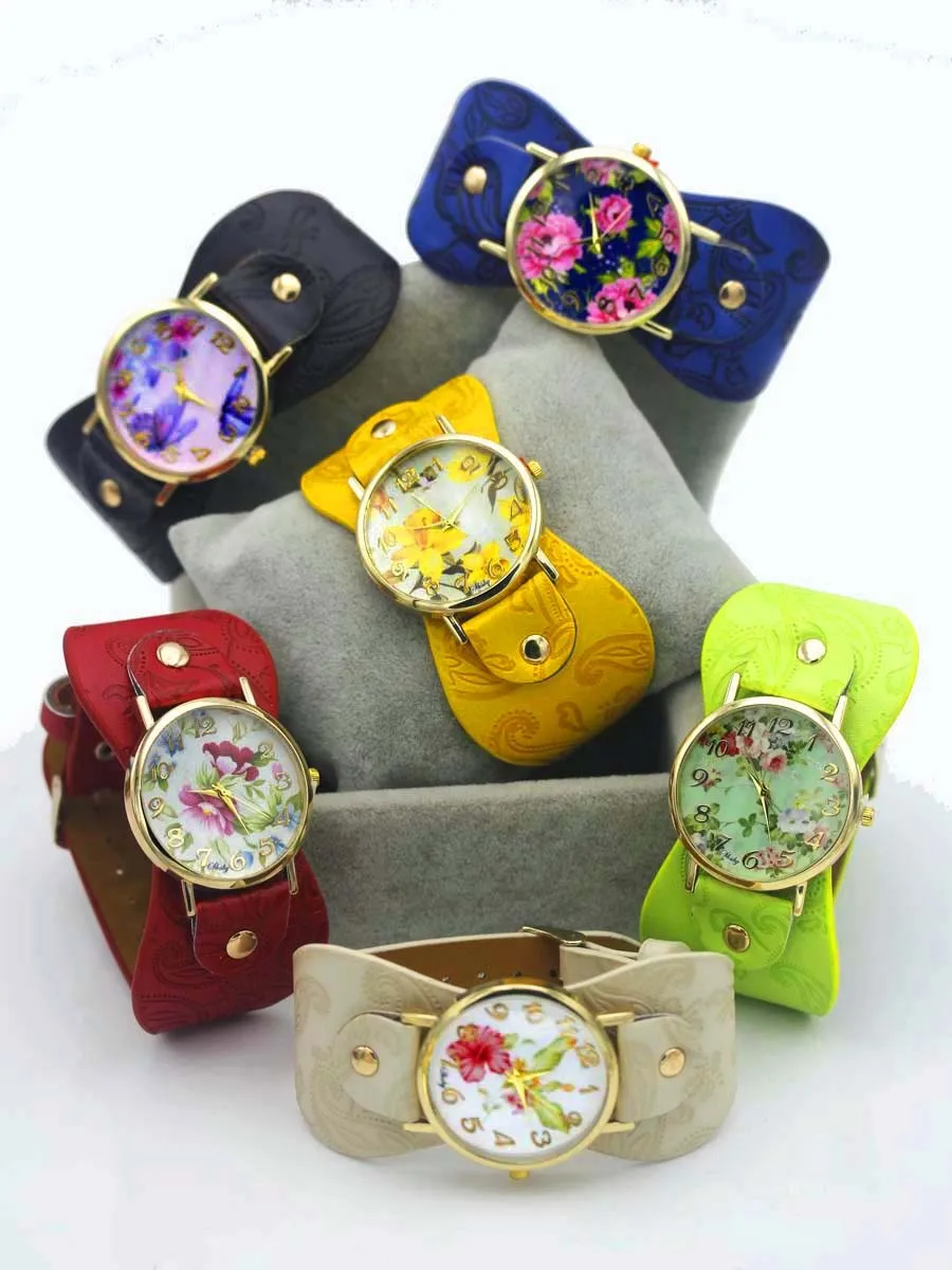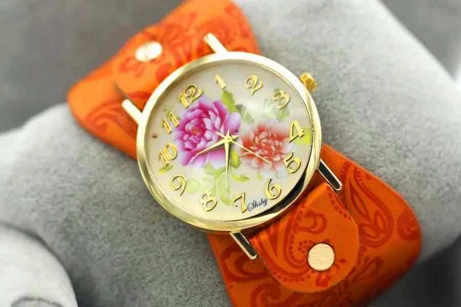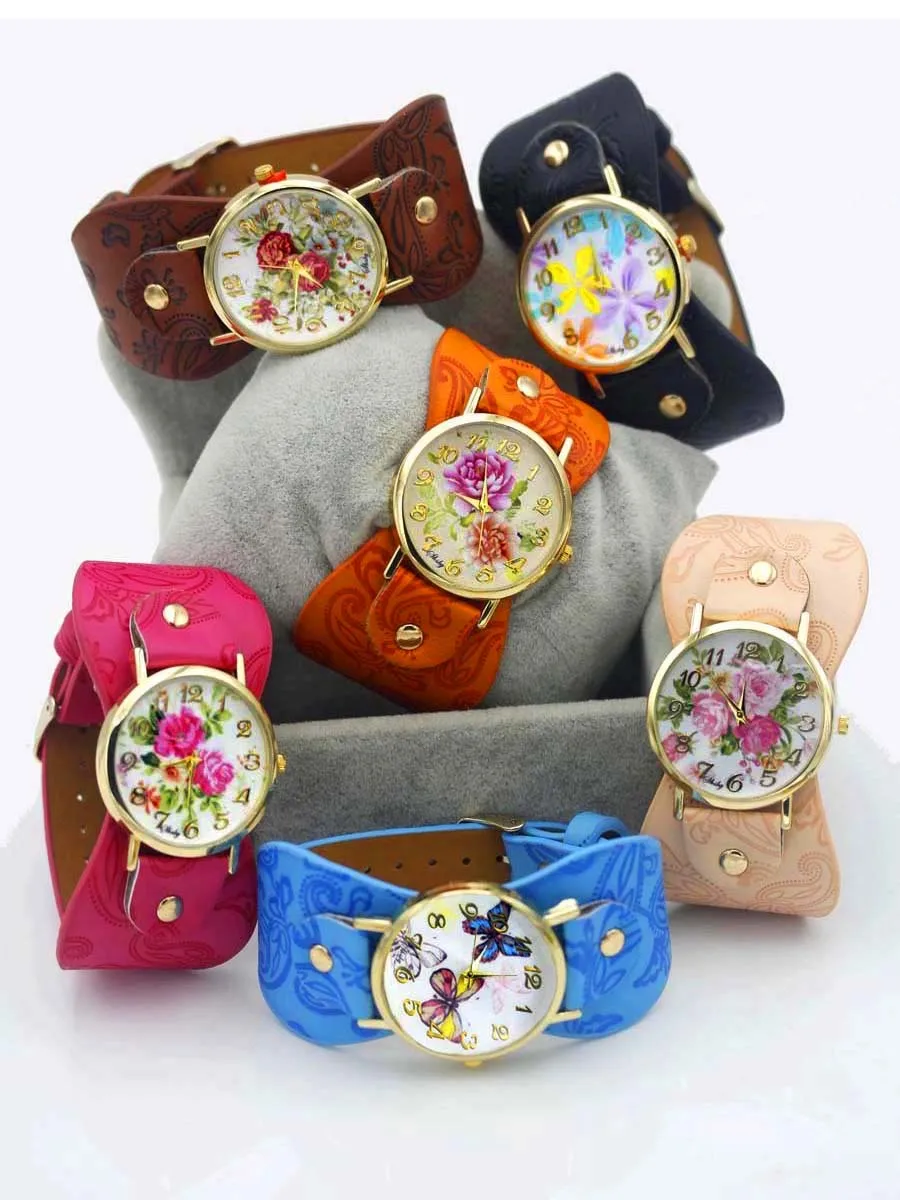 Часы наручные Shsby женские с кожаным ремешком, с принтом, с широким ремешком, Разноцветные Повседневные, подарок для девушек