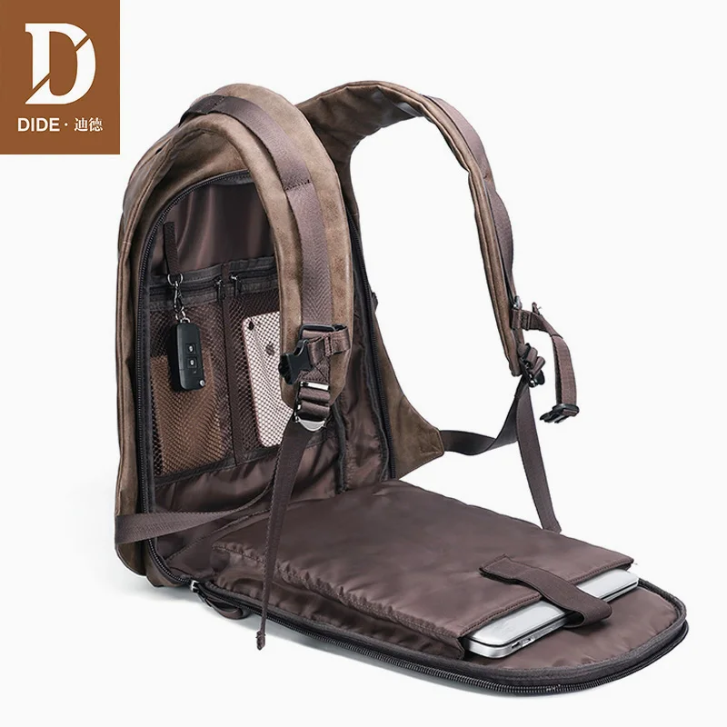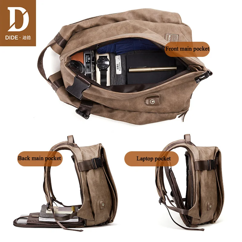 Рюкзак мужской DIDE 2021, кожаный, с USB-зарядкой, для ноутбука 15,6, черный, водонепроницаемый, винтажный портфель