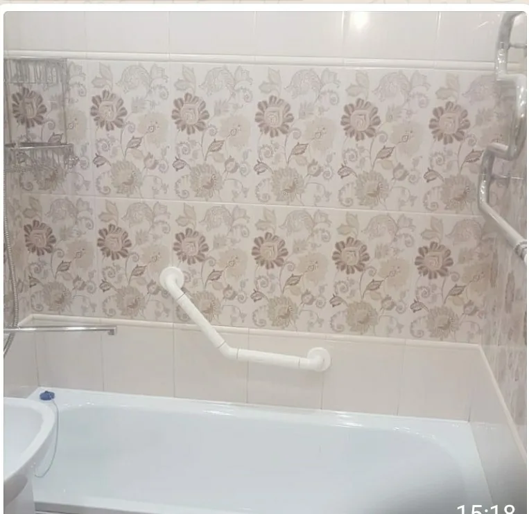 поручень просто супер! закрепил правда не на дюбель гвозди которые шли в комплекте а на анкера, но только потому что стена хлипкая. внутри поручня металл, снаружи нескользящая пластмасса... Отец очень доволен... Спокойно выбирается из ванны. к сожалению забыл сделать фотки.