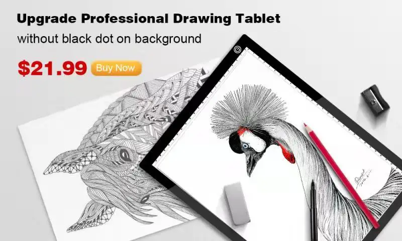 Особенности:1. Идеально подходит для трафаретов, 2D анимаций, каллиграфии, тиснения, скрапбукинга, татуировок, эскизов, рисования и т. д.2. Технология видения, без мерцания, супер-яркий, экологически чистый светодиодный с эталонной сеткой.3. Благодаря компактному и элегантному дизайну Светодиодная панель тонкая и Энергоэффективная.4. Мы используем специальную акриловую поверхность, она кажется стеклянной, но намного прочнее, чем стекло.5, удобно для использования на столе или на коленях, легко собирается, переносится и укладывается.Характеристики:Материал: акрилМощность: 5 В-12 В постоянного токаСветильник источник света: светодиодныйМощность Потребляемая мощность: 2,2 ВтС сенсорным переключателем, трехуровневым затемнением, интеллектуальным переключателемПримечание: плавное затемнение означает, что мы можем вручную настроить яркость, и нажмите сенсорную клавишу, чтобы выбрать соответствующую яркость, а затем отпустить ее.Посылка включает в себя:1 * планшет для рисования1 * USB кабель1 * Руководство пользователя** На графическом планшете есть защитная пленка, пожалуйста, удалите ее перед использованием. **