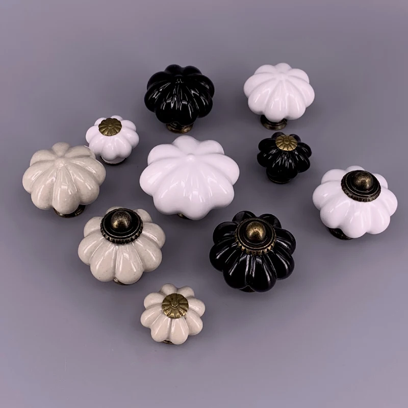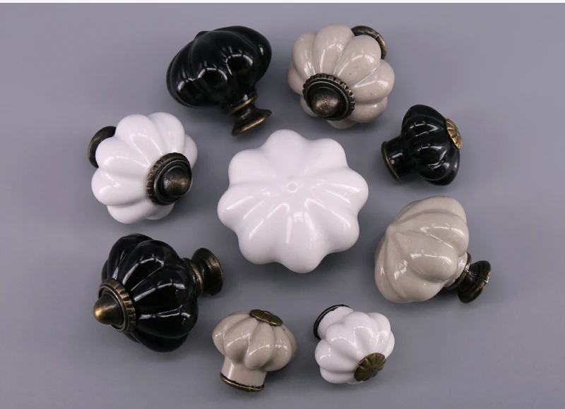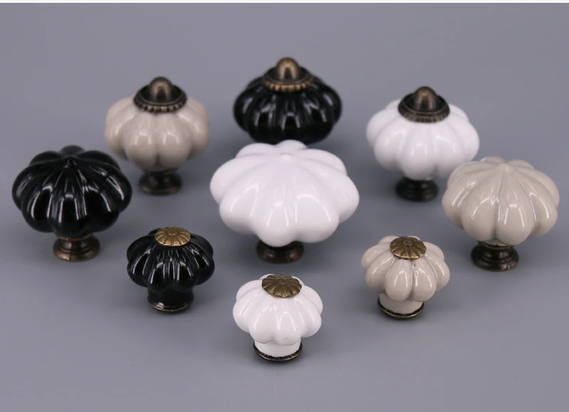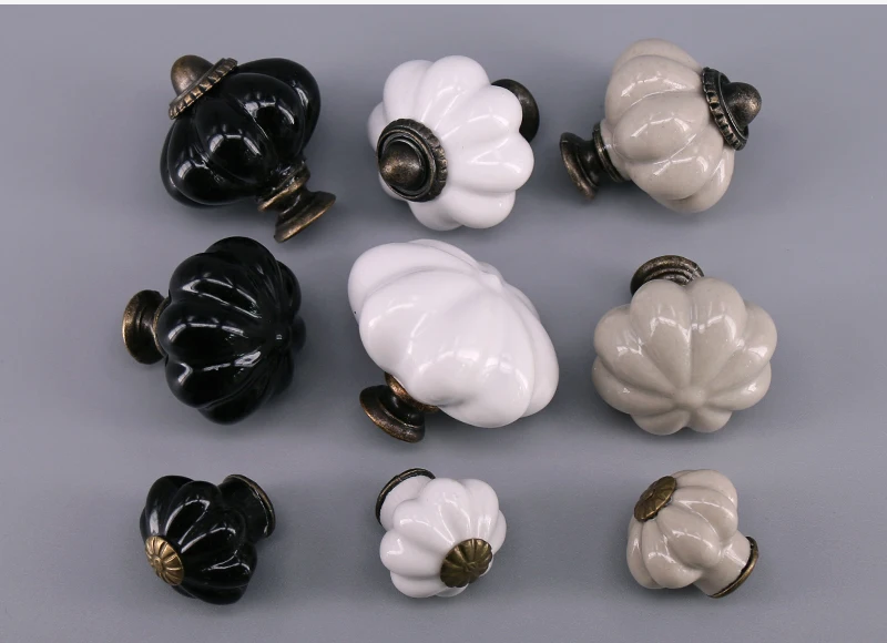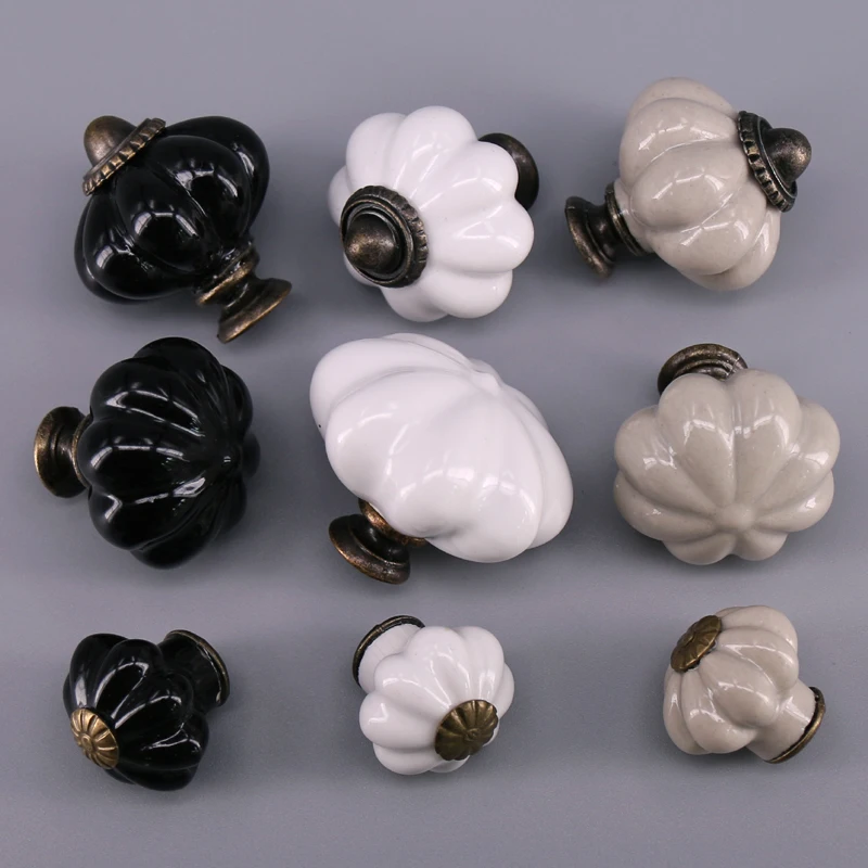 1X белые, серые, черные дверные ручки для кухонного шкафа, шкафа, сундука, мебели, ручки для ящиков, фарфоровые дверные ручки в виде тыквы