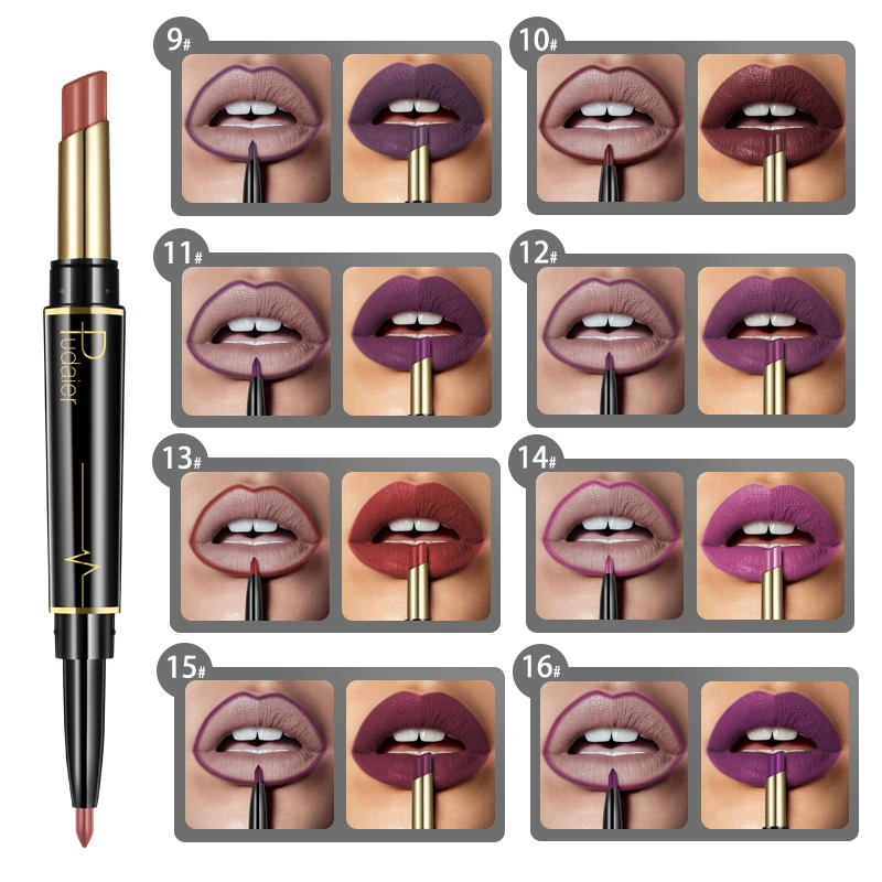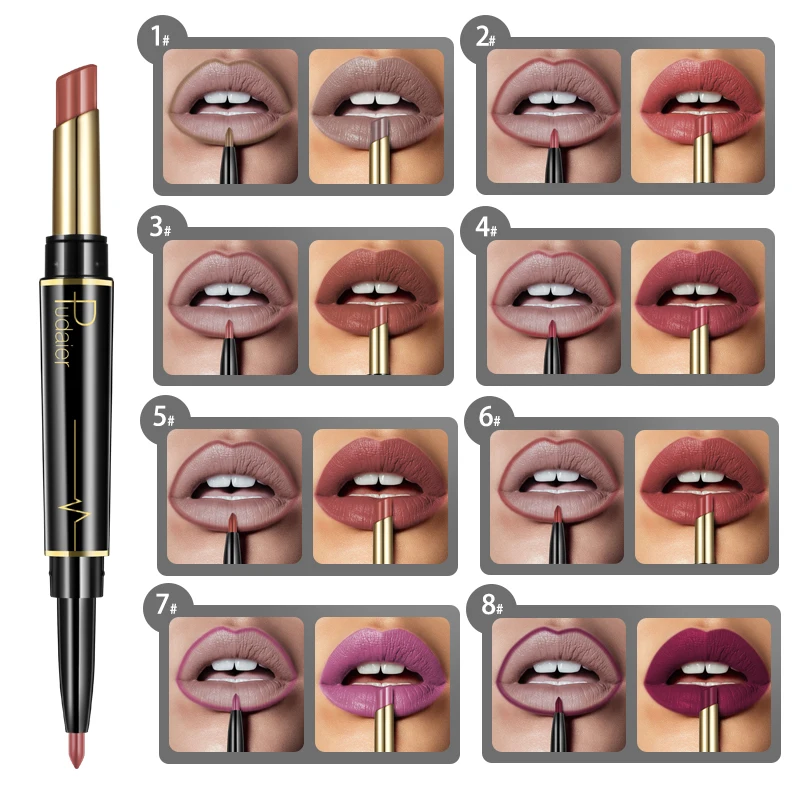 Двухсторонняя матовая подводка для губ, помада, карандаш для макияжа, набор оттенков для губ для женщин, антипригарная чашка, длинная матовая губная помада
