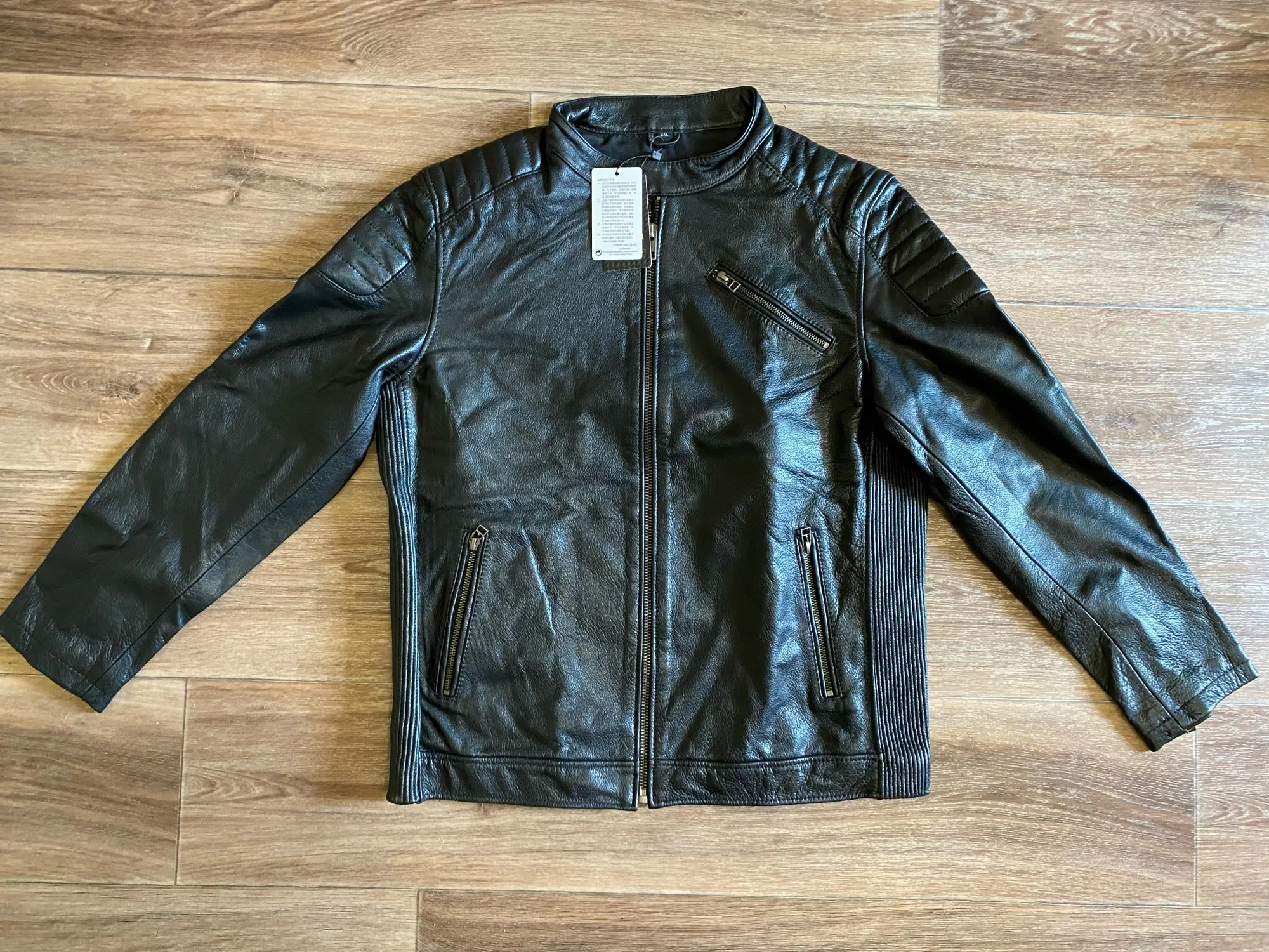 Куртка мужская кожаная, приталенная, из 100% натуральной воловьей кожи, Азиатский Размер, M104