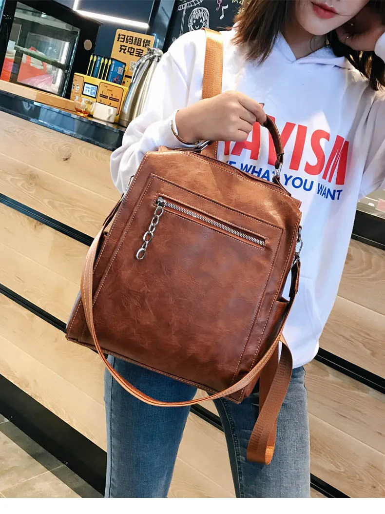 Кожаный школьный ранец для женщин, повседневный вместительный многофункциональный винтажный черный рюкзак на ремне для девочек-подростков, XA158H, 2021