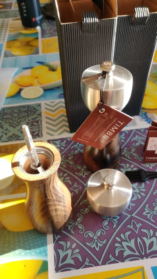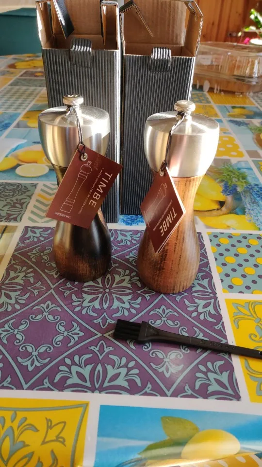 продовец молодец,отправил быстро и как не странно в попу мира ,а это Эстония ,сюда пришло за 13 дней ,из-за этого уже стоит брать о товаре коробка была слегка но не печально помята даже в подарок бы сошла ,купил для соли и для перца ,все выглядит и в действие хорошо,даже очень добротно так сказать,если придраться то на фото видно сверху стерлась буква, и есть маленький дефектик ,он не заметный ,это типо из-за дерева из которого делали так что даже не страшно а как-то даже оригинально,модно было бы не много подешевле сделать,а так все стоит всего и советую просто поправде порадовали приобретения