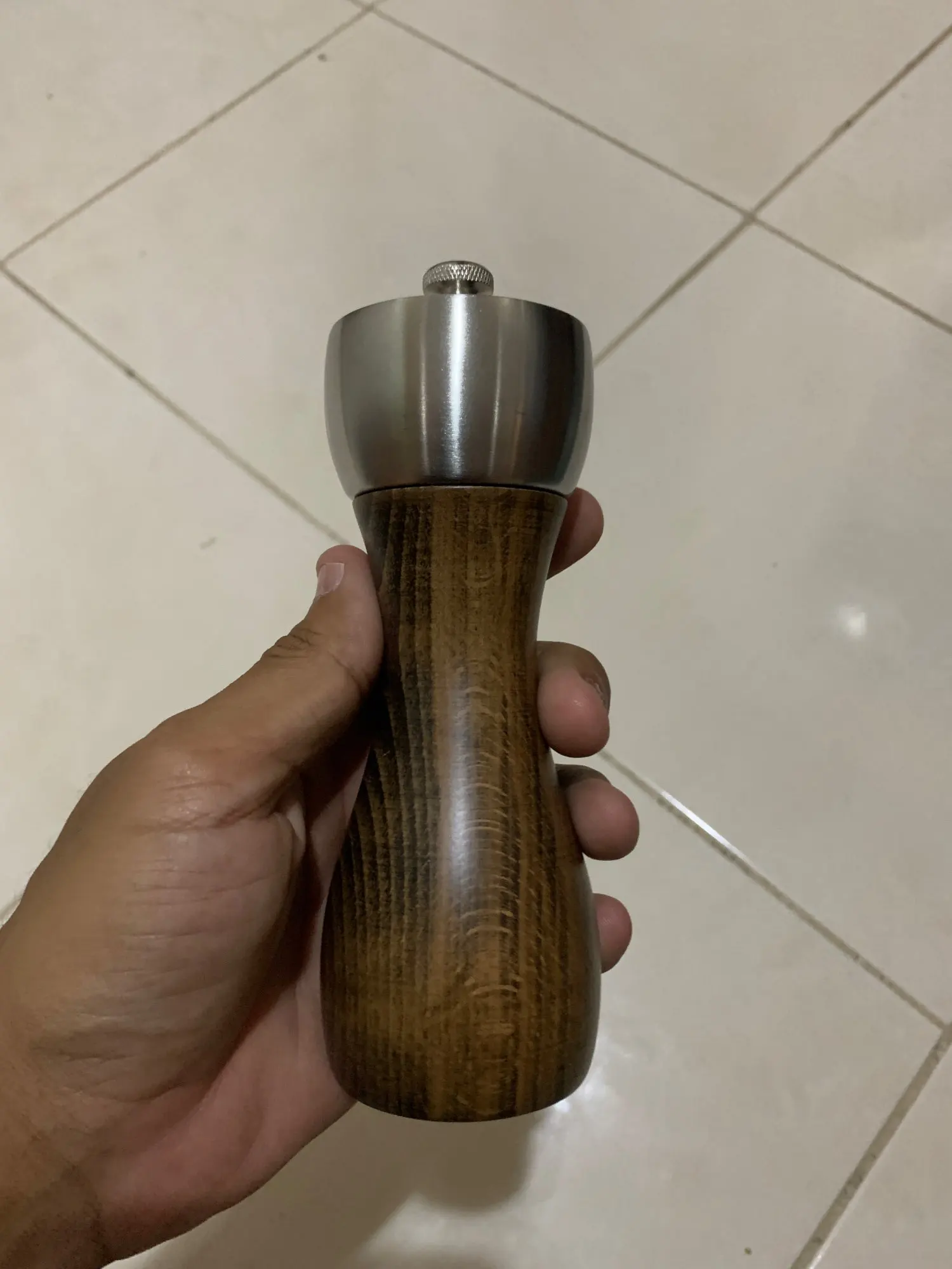 Мельница хорошего качества, несмотря на колпачок из нержавеющей стали, немного легкая, но грубая измельчающая даже стягивающаяся, слишком плохо.