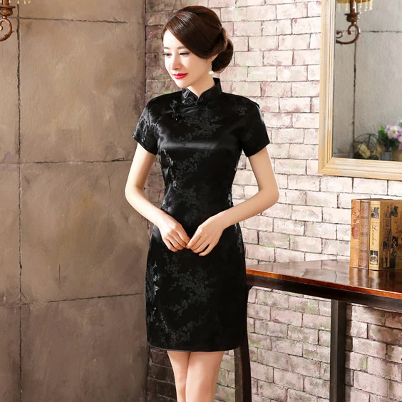 Женское атласное платье мини с драконом, сексуальное золотистое традиционное Повседневное платье-Ципао в китайском стиле