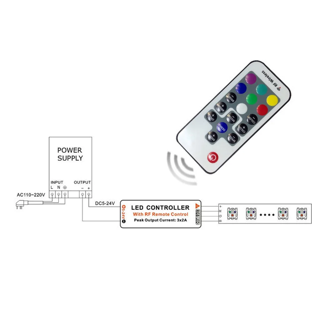 Мини светодиодный пульт дистанционного управления RGB DC5-24V 17key RF беспроводной контроллер диммера DC для SMD 5050 12A RGB Светодиодная лента освещения