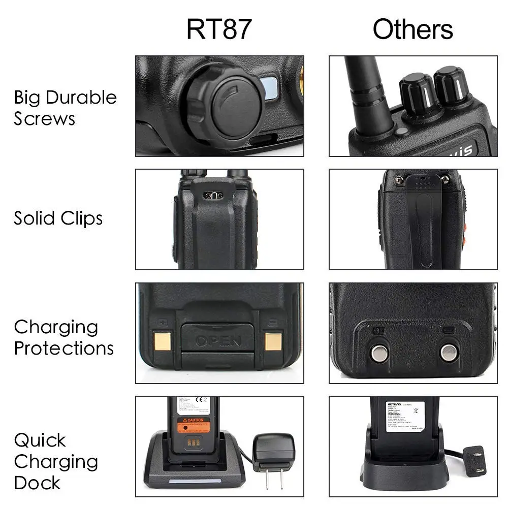 RT87-это новейший Retevis аналоговый Водонепроницаемый радиоприемник, сохраняющий отличную Водонепроницаемость функции RT8, RT82, HD1, RT87-это еще один настоящий водонепроницаемый радиоприемник, который стоит ждать!