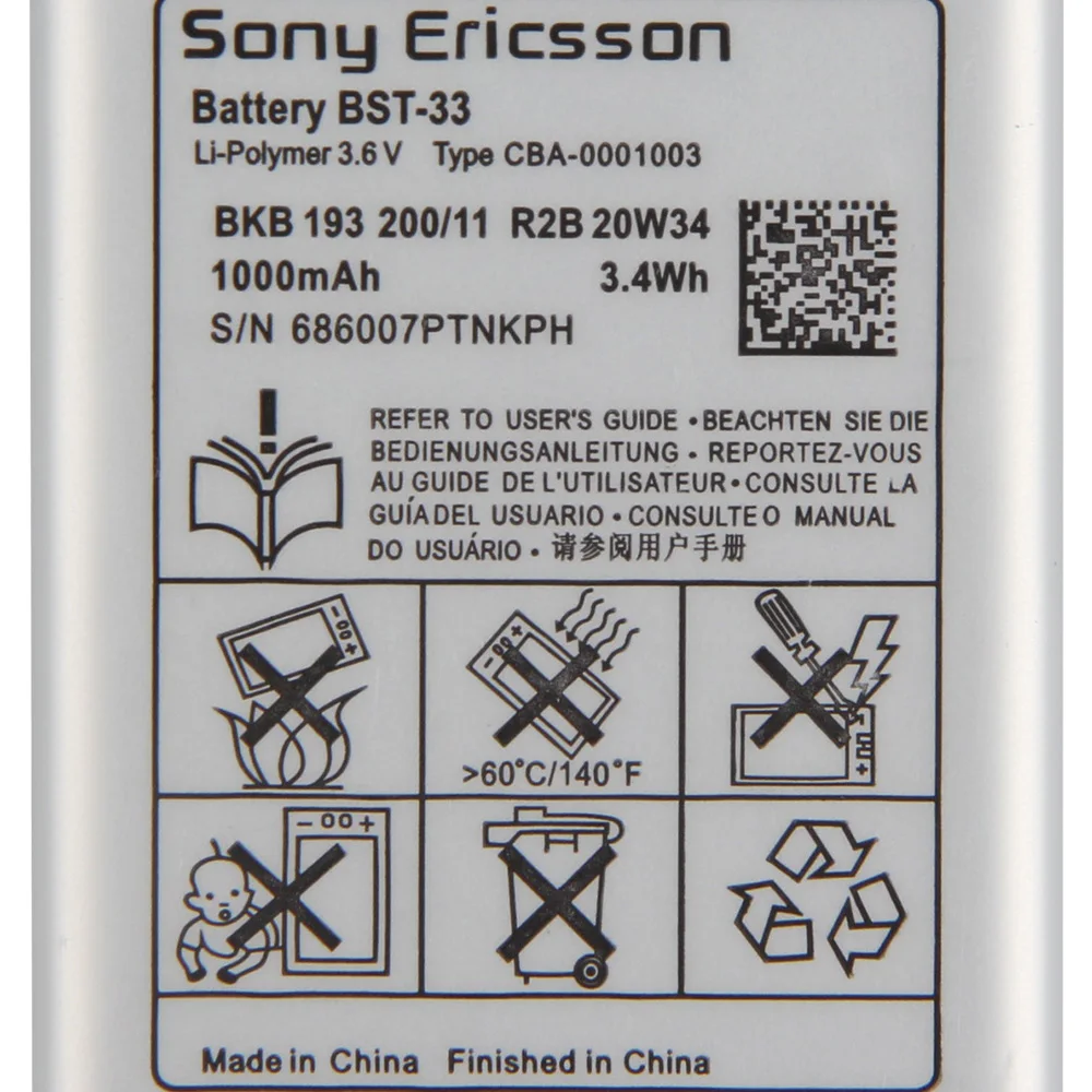 Оригинальный сменный аккумулятор Sony для SONY W610 W660 T715 G705 P1 U1 W850 W830 U10 K790 BST-33 BST-37 для W810C W700C W710C K750