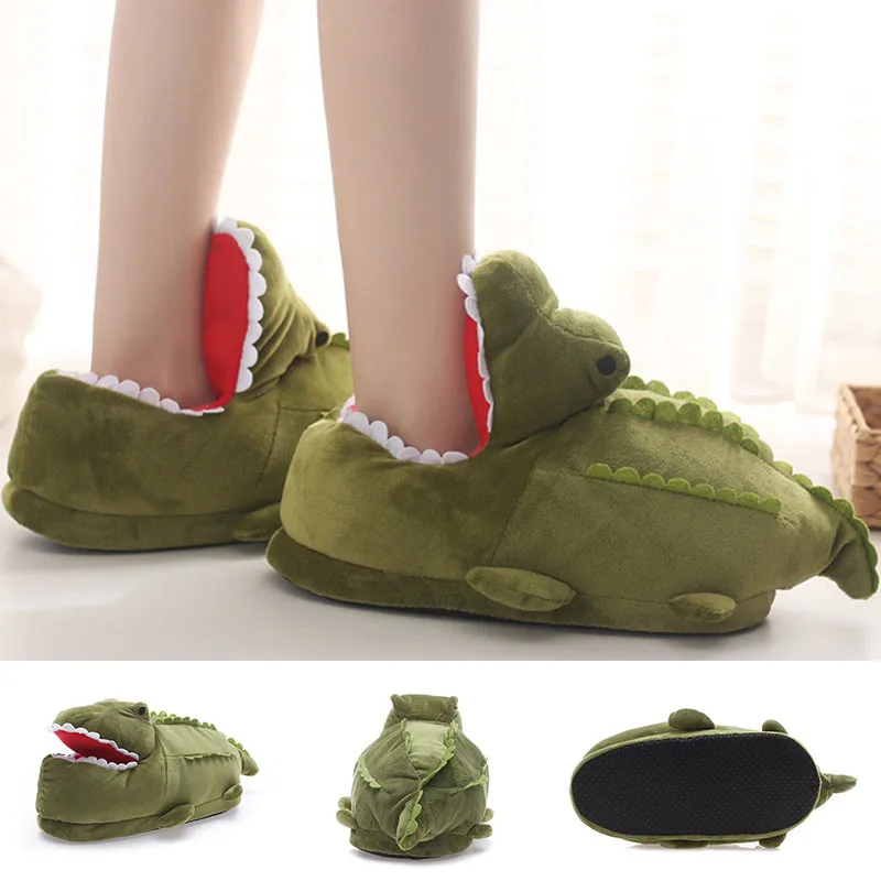 тапочки женские домашин тапочки для дома зимняя обувь зимние домашние тапочки унисекс с милым рисунком крокодила; Женские и мужские теплые плюшевые домашние тапочки; Нескользящая хлопковая обувь без застежки