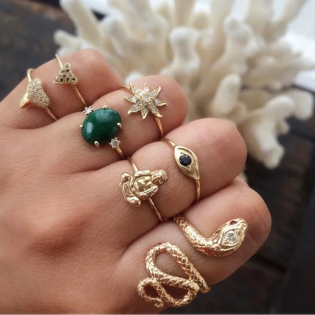Набор колец в винтажном стиле для женщин, кольца в стиле бохо на ко...