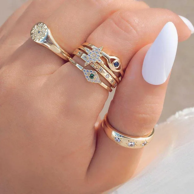 Комплект женских колец в стиле бохо с кристаллами, бабочкой, глазам...