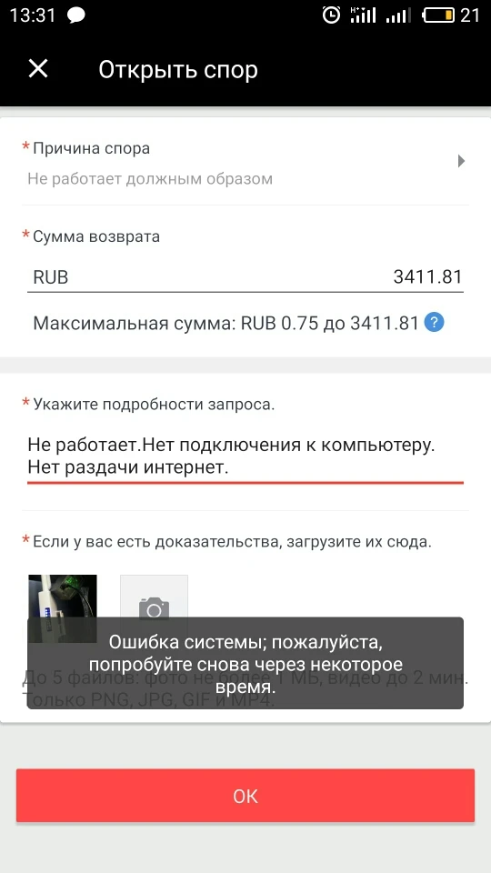 Продавец подлец Не советую покупать Поработал меньше месяца Написал продавцу Он сказал открой спор Я две недели доказывал что не открыть спор поле 15 дней. Потом он предложил купить новый открыть спор на возврат и опять наебал Срок вышел ссылку на скачивание товарной накладной так и не было. Срок вышел и спор тупо закрыт теперь нихуя не сделать. Развод чистой воды.