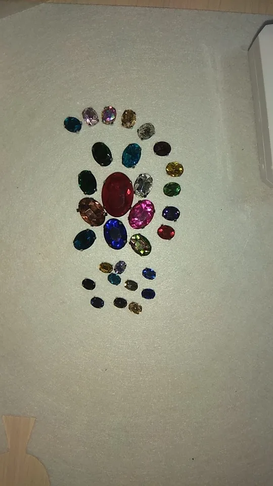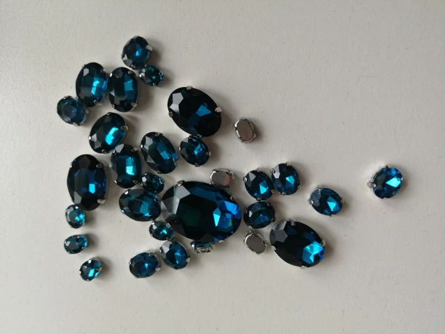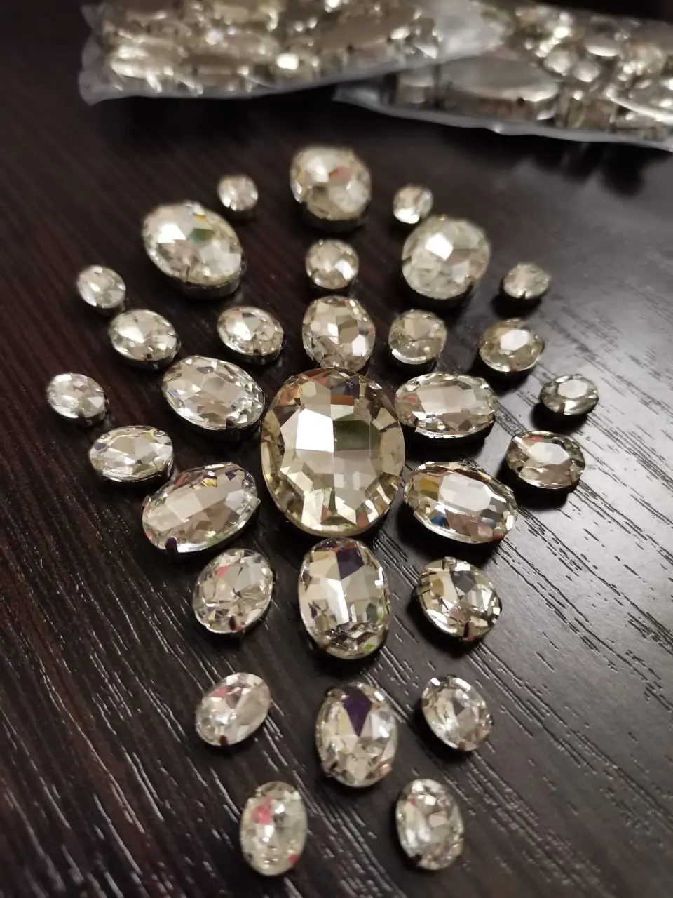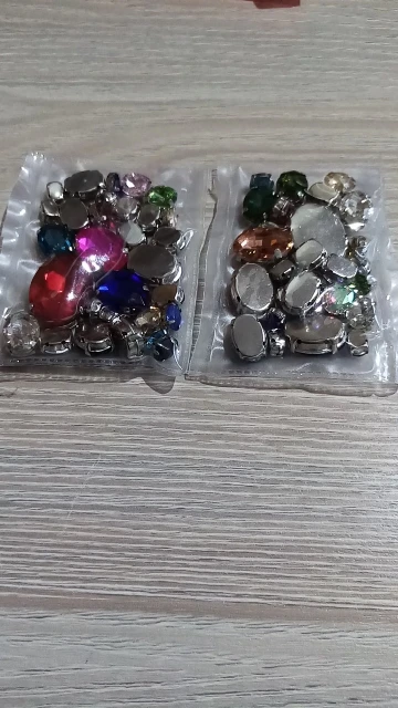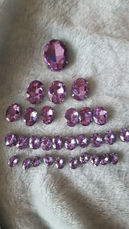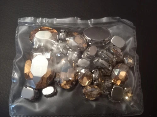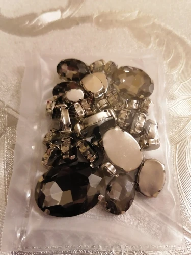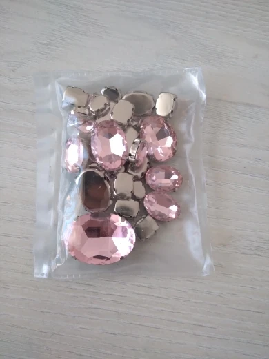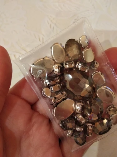 Стразы очень красивые, стеклянные, оттенок, как на картинке. Количество 30шт, все целые, без сколов. Доставка быстрая 11 дней до Астрахани. Мне товар очень понравился, единственный минусик, некоторые крупные камушки болтаються в цапах, но это не страшно можно затянуть. А в остальном все отлично. Однозначно рекомендую этот магазин и товар.
