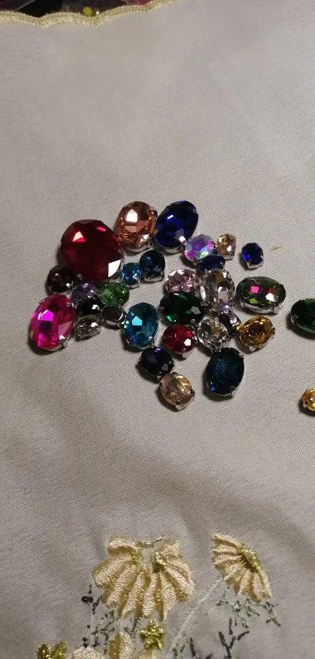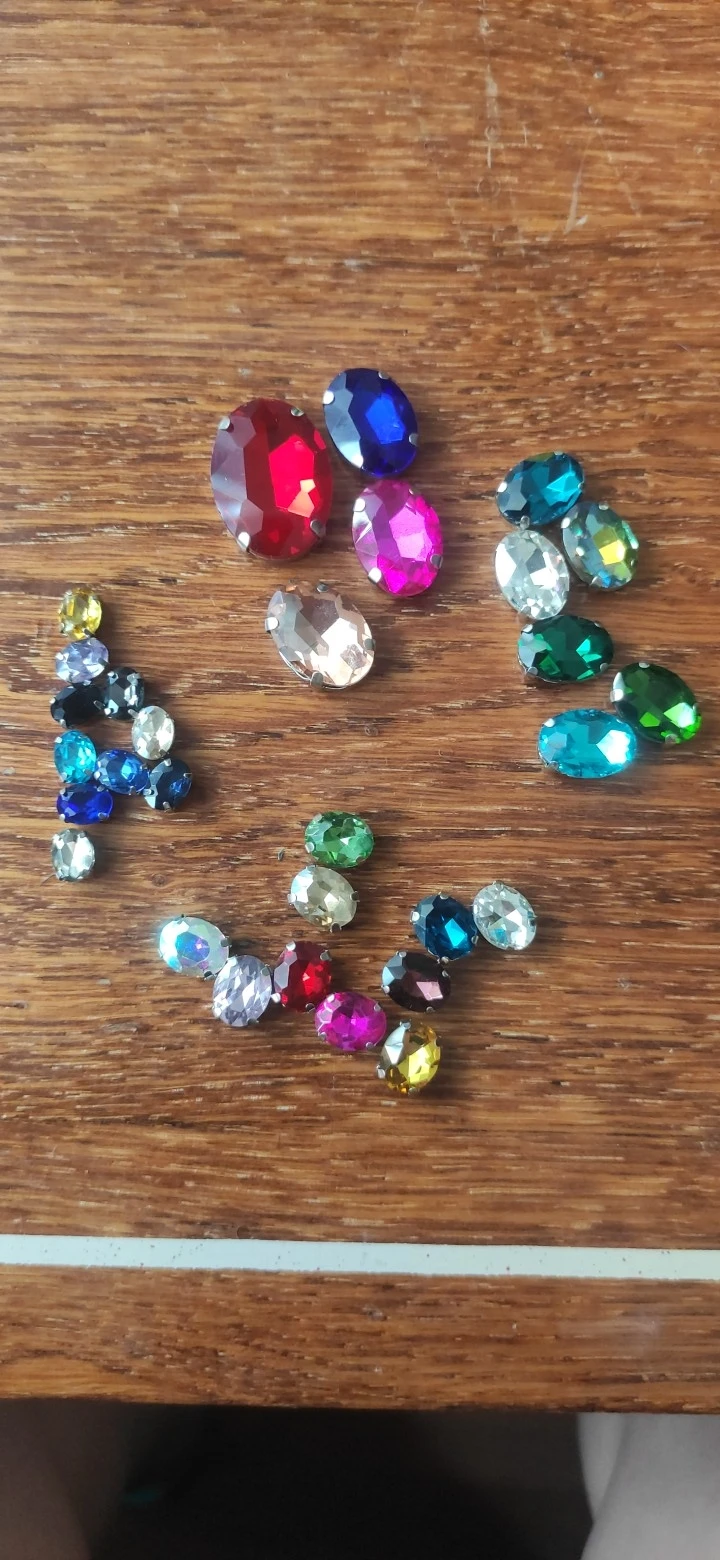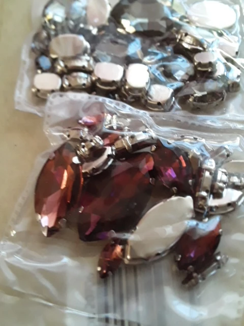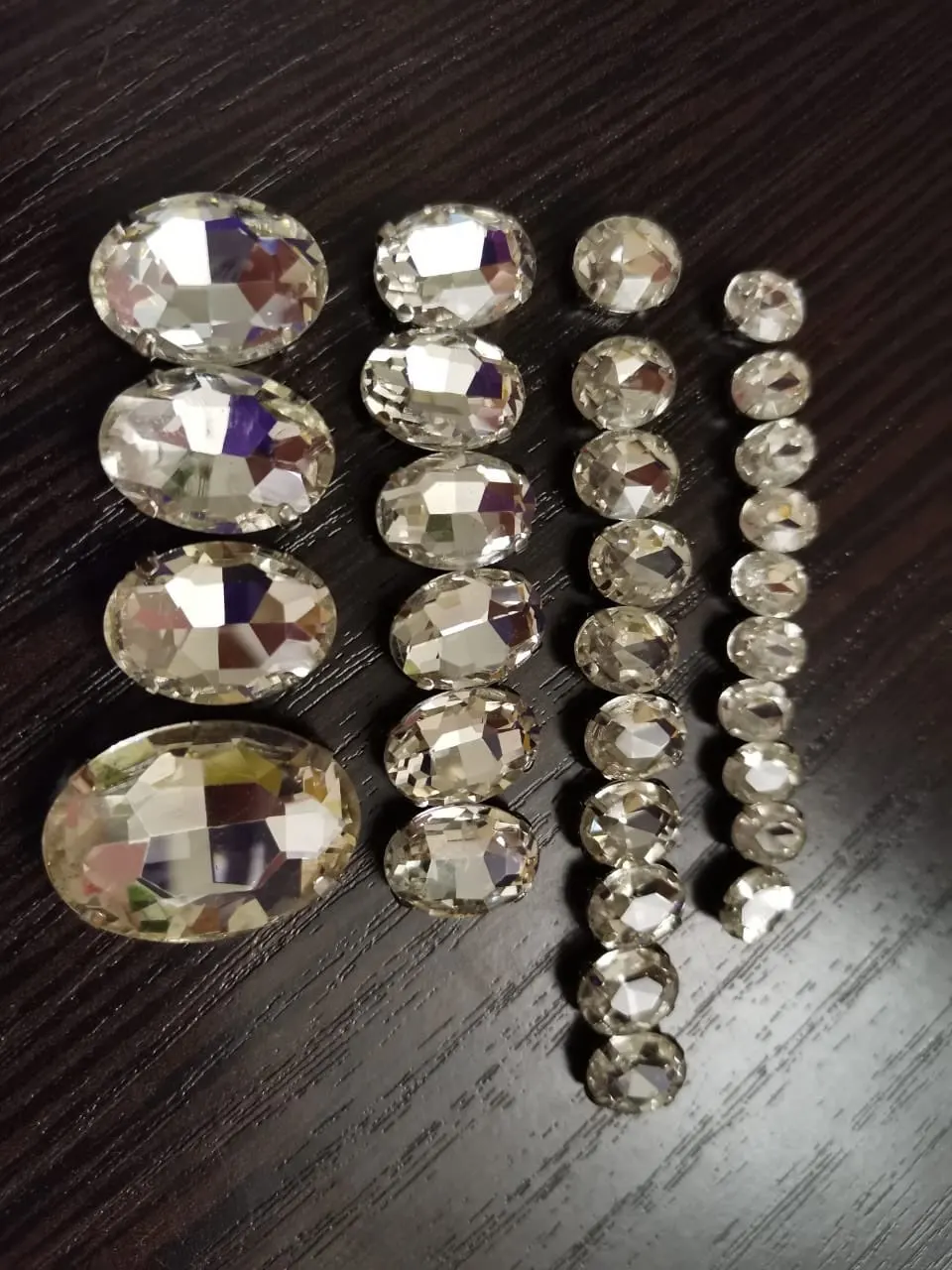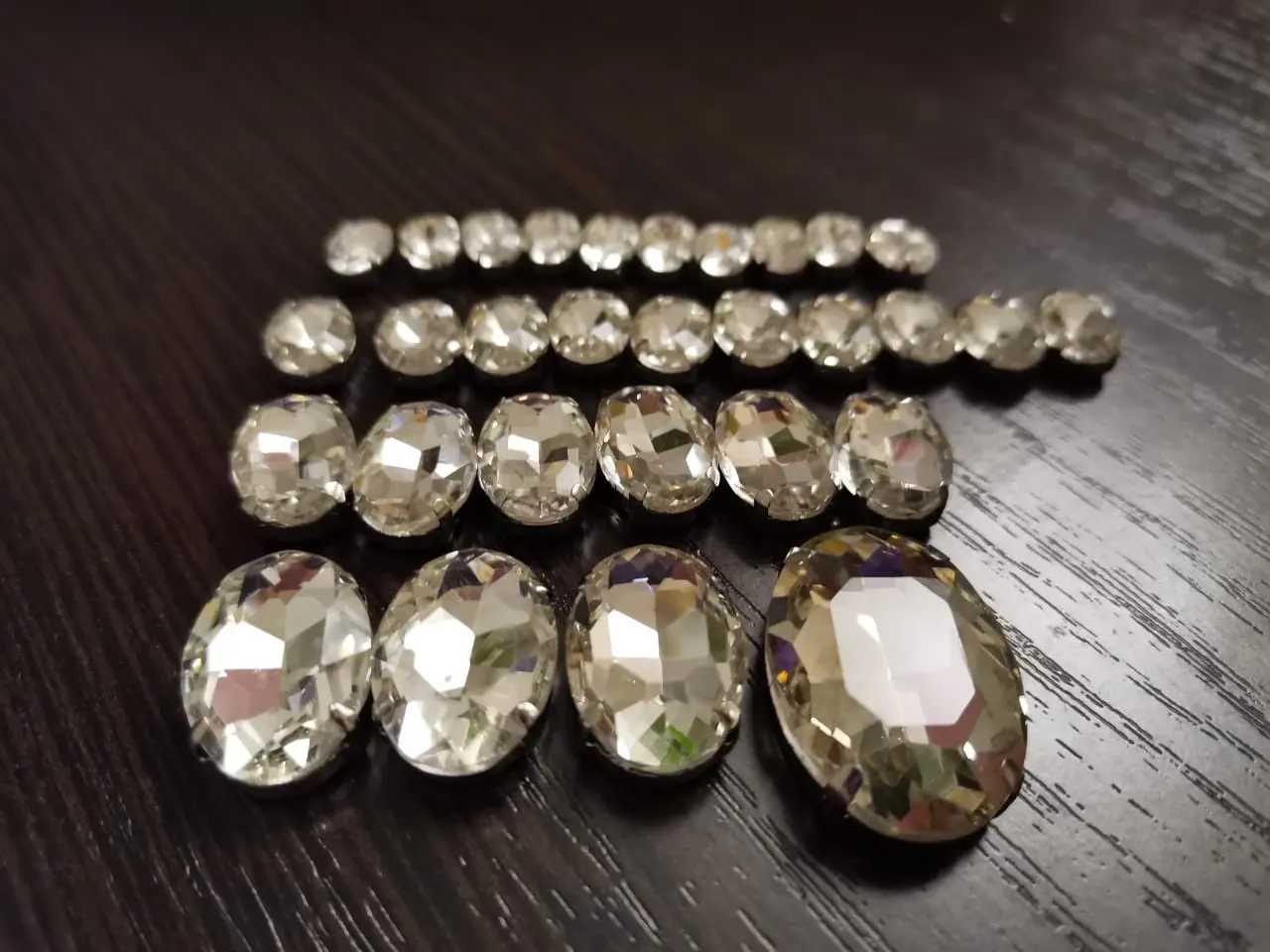 Стразы очень красивые, стеклянные, оттенок, как на картинке. Количество 30шт, все целые, без сколов. Доставка быстрая 11 дней до Астрахани. Мне товар очень понравился, единственный минусик, некоторые крупные камушки болтаються в цапах, но это не страшно можно затянуть. А в остальном все отлично. Однозначно рекомендую этот магазин и товар.