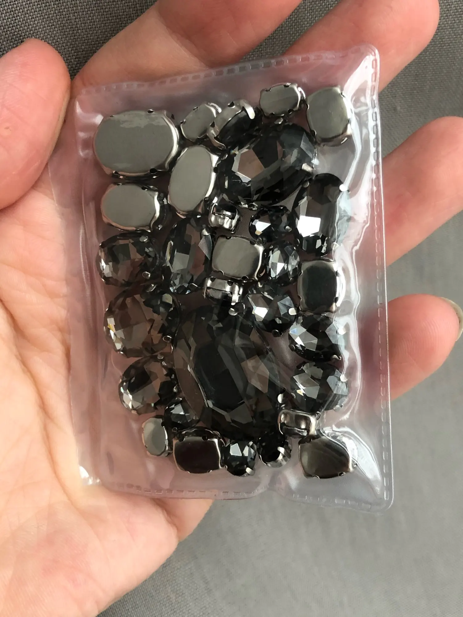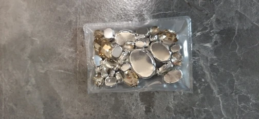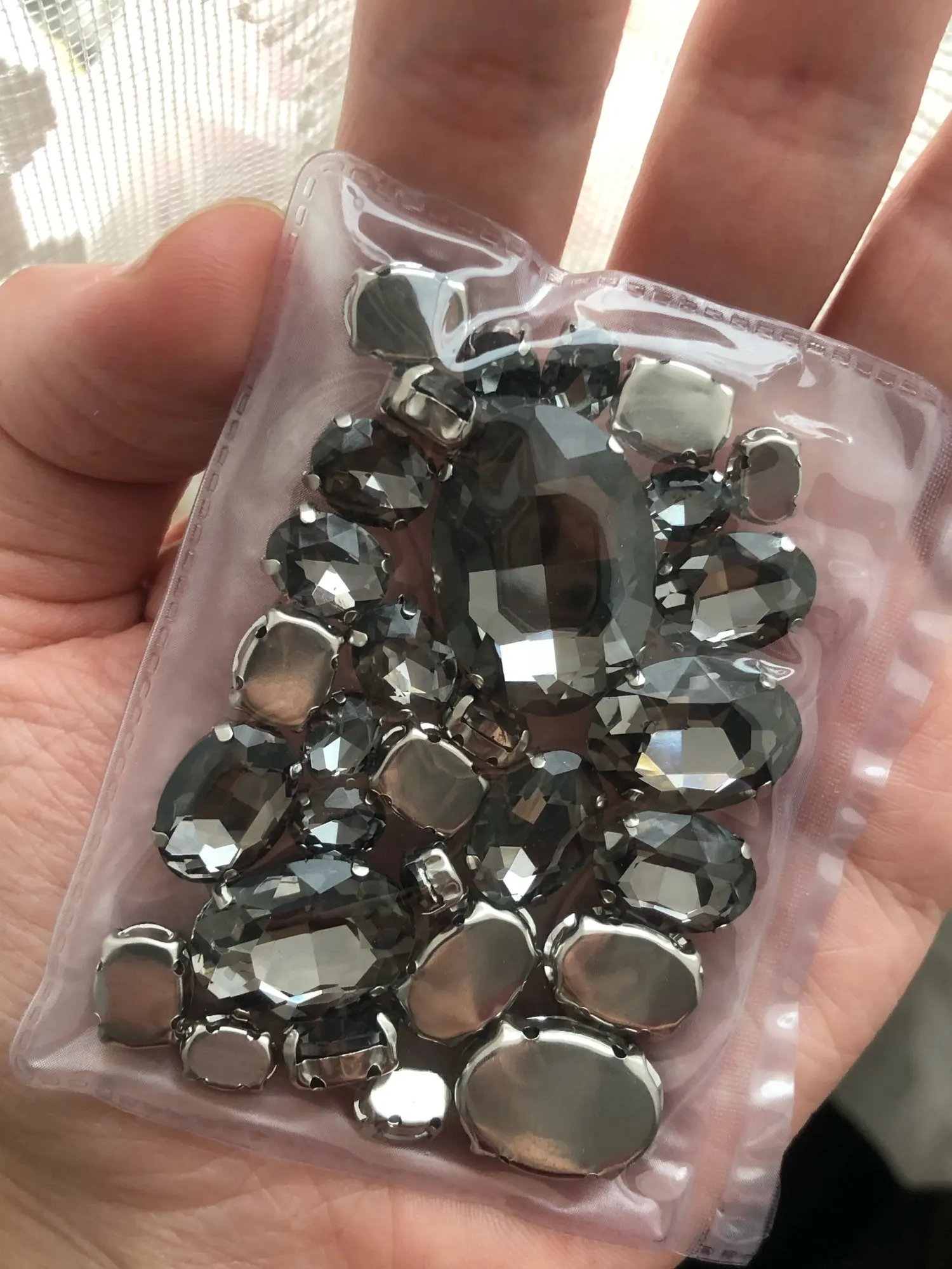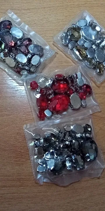 цвет кристаллов немного меняется с размером, но в целом стразы хорошие, цапы относительно крепкие. хотелось бы более интересную огранку на крупных, но для своей цены вполне хорошо. без царапин и сколов. по количеству всё верно в этом наборе, в сером 29