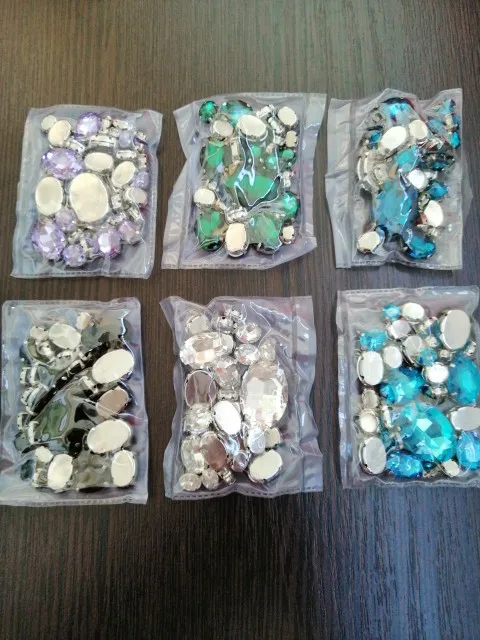 5 размеров 30 шт Бесплатная доставка! Стеклянные стразы для пришивания, с серебристыми когтями