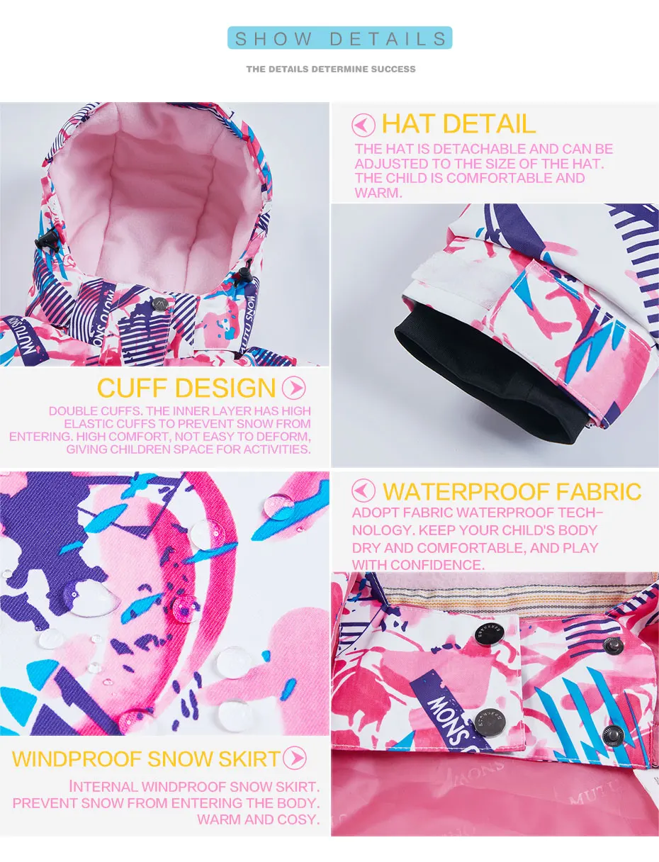 Новая лыжная куртка, детская брендовая Новая высококачественная детская ветрозащитная Водонепроницаемая зимняя куртка для девочек, куртка для лыж и сноуборда