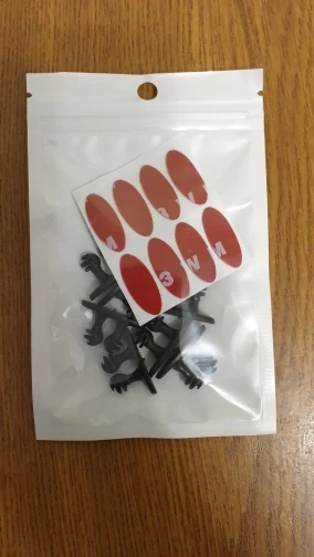 Прибыло в Москву за 2 недели. Пластик фиксаторов качественный, сами фиксаторы хорошие. Единственный момент запасайтесь двойным скотчем, так как в комплекте скотч не клеится. Может конечно мне не повезло, но я наклеил на свой скотч. А так в общем покупкой доволен. Продавца рекомендую.